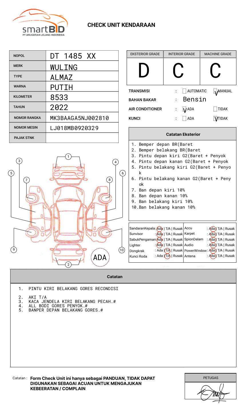 SEBELUM MELAKUKAN PENAWARAN UNIT PESERTA LELANG WAJIB MELAKUKAN PENGECEKAN UNIT DAN DOKUMEN TERLEBIH DAHULU //PIC AHMAD 62 823-4527-8181// COPY BPKB DAN FAKTUR TDK ADA.