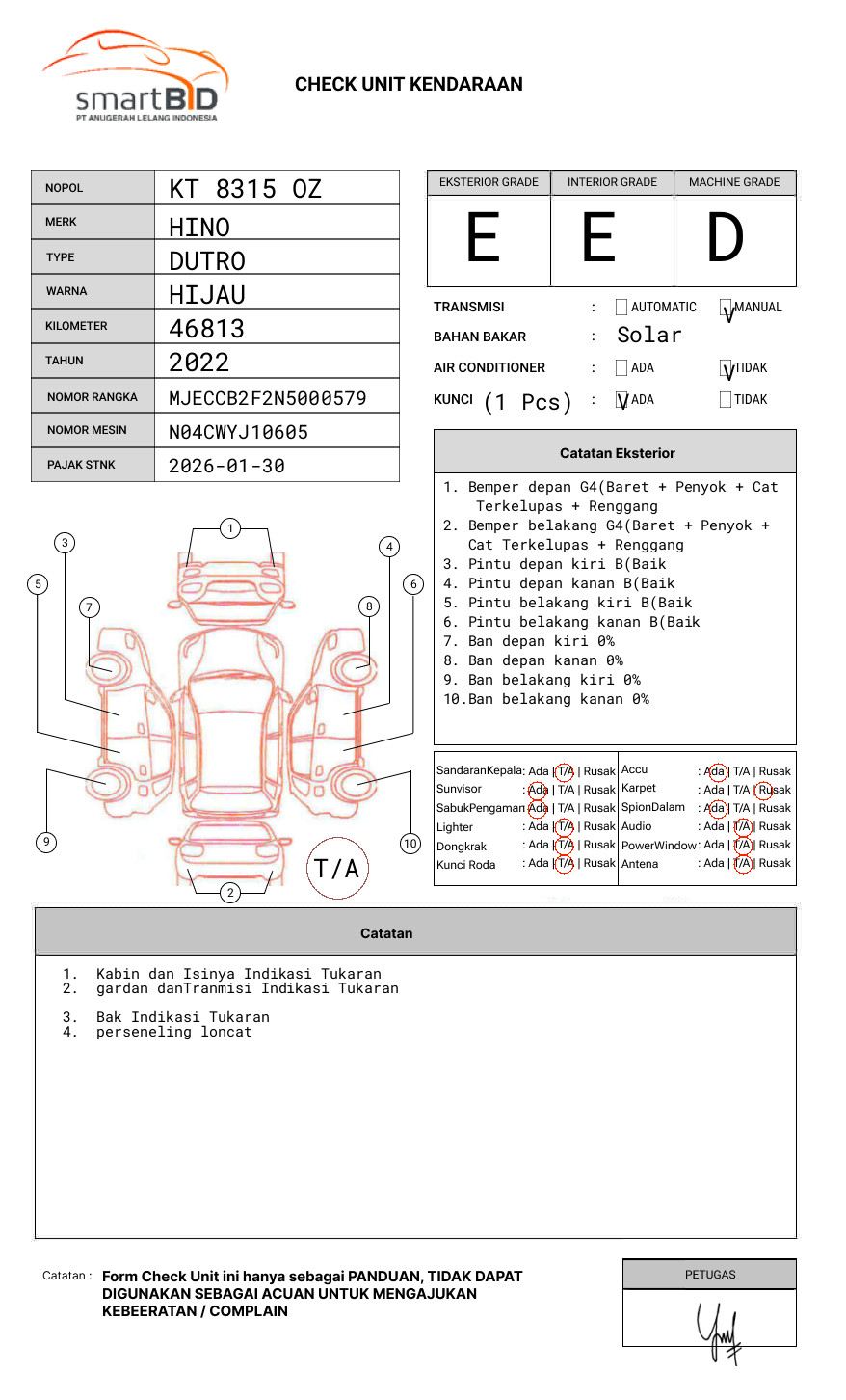 SEBELUM MELAKUKAN PENAWARAN UNIT PESERTA LELANG WAJIB MELAKUKAN PENGECEKAN UNIT DAN DOKUMEN TERLEBIH DAHULU // PIC GUSTI 082250531175 // PUTRA:082127837606// UNIT DIKENAKAN BIAYA PPN 1.1% DARI HARGA TERBENTUK //NOPOL FISIK TA