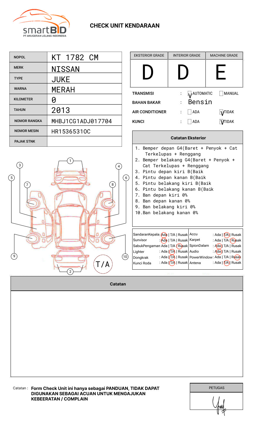 SEBELUM MELAKUKAN PENAWARAN UNIT PESERTA LELANG WAJIB MELAKUKAN PENGECEKAN UNIT DAN DOKUMEN TERLEBIH DAHULU // PIC GUSTI 082250531175// PUTRA:082127837606 // UNIT DIKENAKAN BIAYA PPN 1.1% DARI HARGA TERBENTUK //