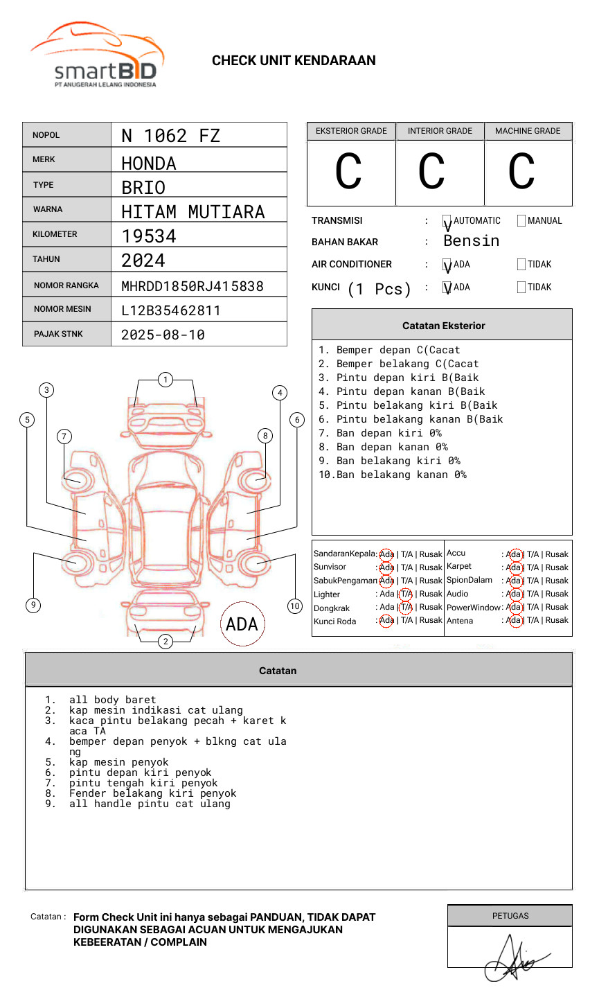 SEBELUM MELAKUKAN PENAWARAN HARAP CEK KONDISI UNIT SERTA DOKUMEN TERLEBIH DAHULU// UNIT DIKENAKAN BIAYA PPN 1,1% DARI HARGA TERBENTUK/// PIC TOYIB : 081332024730