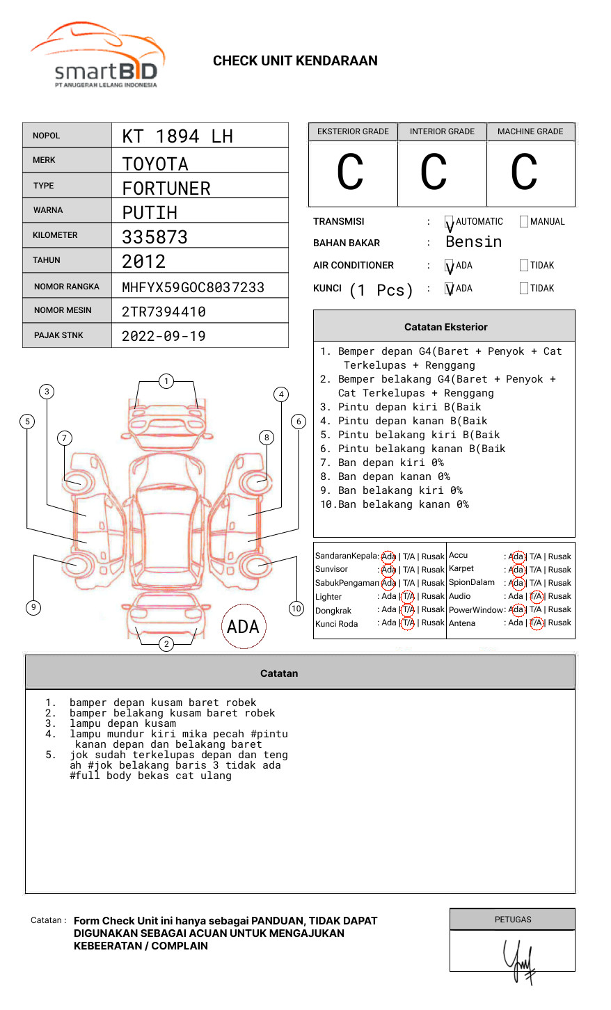 SEBELUM MELAKUKAN PENAWARAN UNIT PESERTA LELANG WAJIB MELAKUKAN PENGECEKAN UNIT DAN DOKUMEN TERLEBIH DAHULU // PIC PUTRA:0813-5153-9927// UNIT DIKENAKAN BIAYA PPN 1.1% DARI HARGA TERBENTUK //