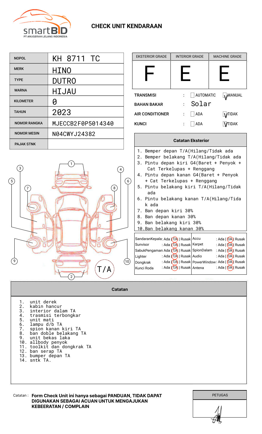 SEBELUM MELAKUKAN PENAWARAN HARAP CEK KONDISI UNIT SERTA DOKUMEN TERLEBIH DAHULU// PIC JHON +62 878-6315-2679 // RIDHO 0899-1384-240// UNIT DIKENAKAN BIAYA PPN 1,1% DARI HARGA TERBENTUK// NOPOL FISIK TA