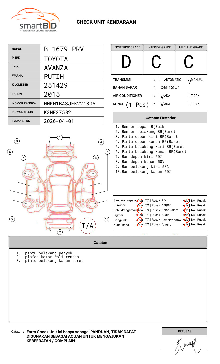 SEBELUM MELAKUKAN PENAWARAN UNIT PESERTA LELANG WAJIB MELAKUKAN PENGECEKAN UNIT DAN DOKUMEN TERLEBIH DAHULU // PIC FELIX +62 858-2222-4863 //