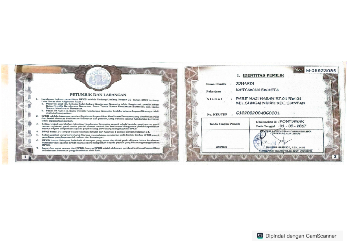 No. Rangka | : | MHKP3CA1JHK139051 |