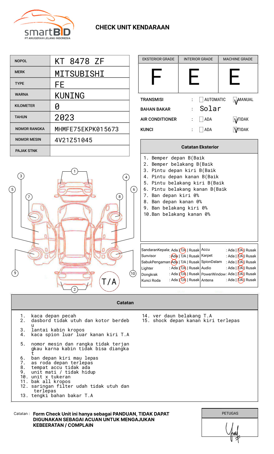 SEBELUM MELAKUKAN PENAWARAN UNIT PESERTA LELANG WAJIB MELAKUKAN PENGECEKAN UNIT DAN DOKUMEN TERLEBIH DAHULU // PIC GUSTI 082250531175 //