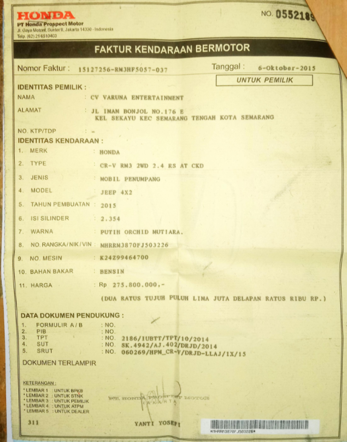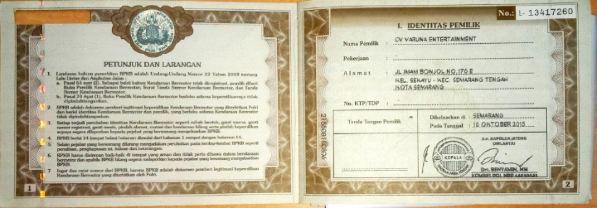 No. Polisi | : | H 1537 DF |