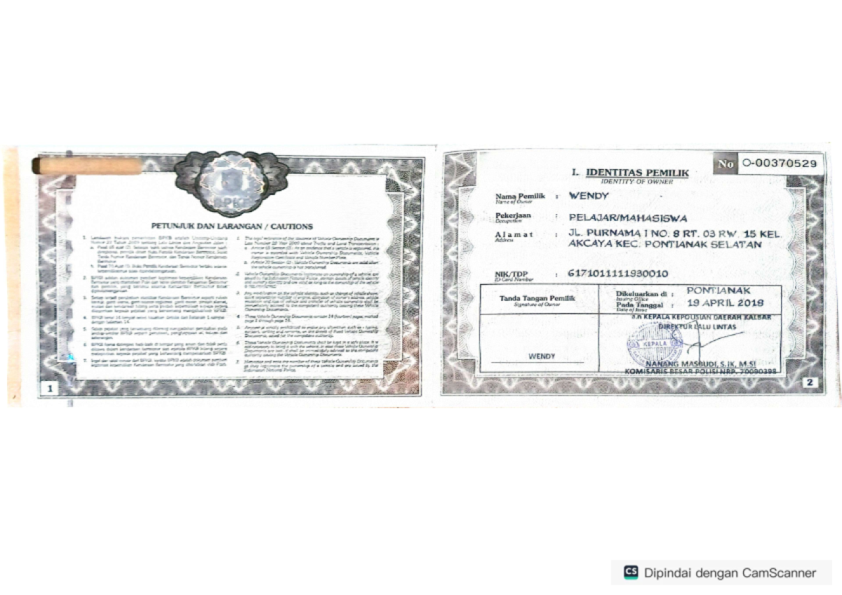 STNK | : | Ada |