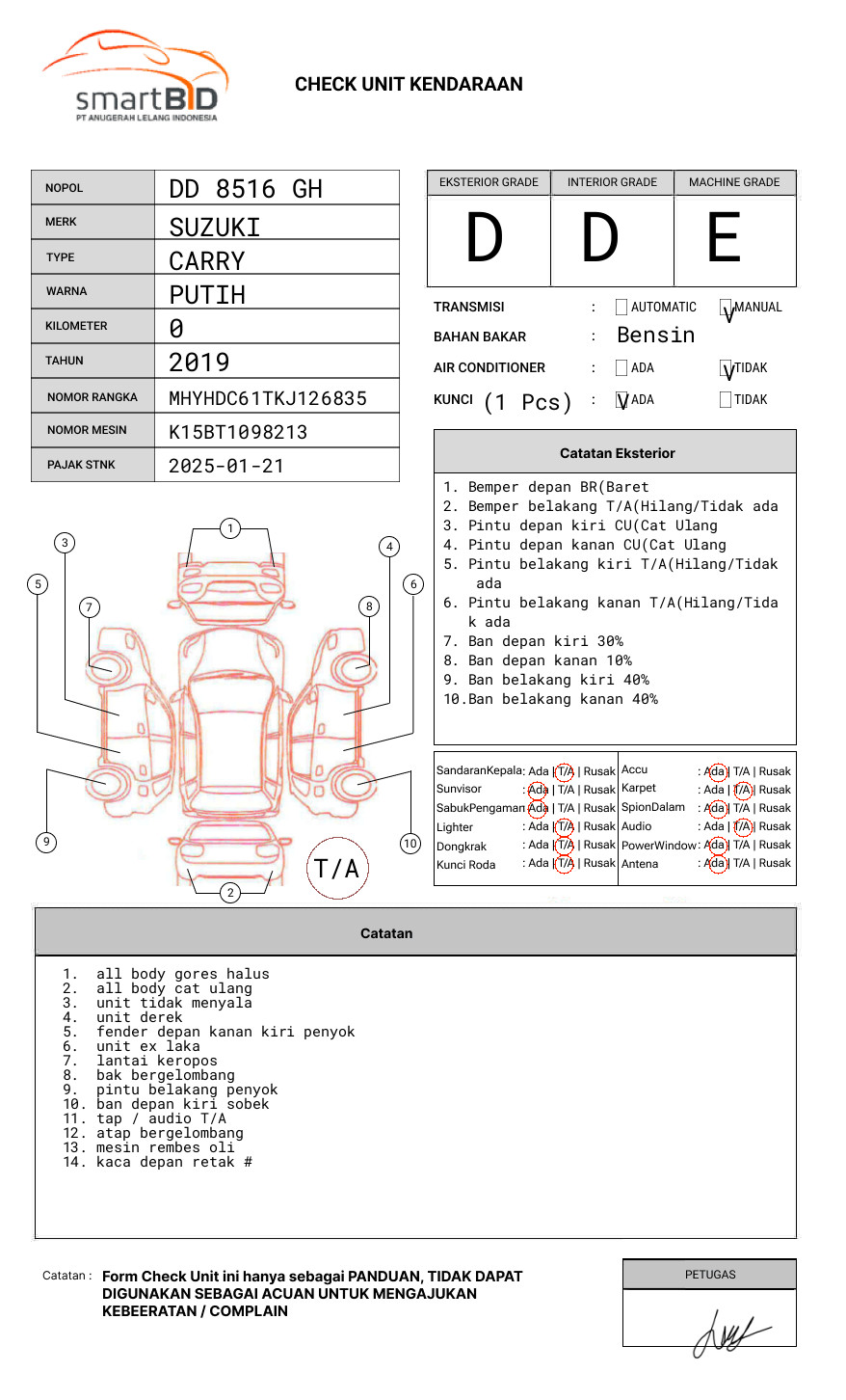 SEBELUM MELAKUKAN PENAWARAN UNIT PESERTA LELANG WAJIB MELAKUKAN PENGECEKAN UNIT DAN DOKUMEN TERLEBIH DAHULU // PIC LULU +62 856-5712-5589//UNIT DIKENAKAN BIAYA PPN 1.1% DARI HARGA TERBENTUK //