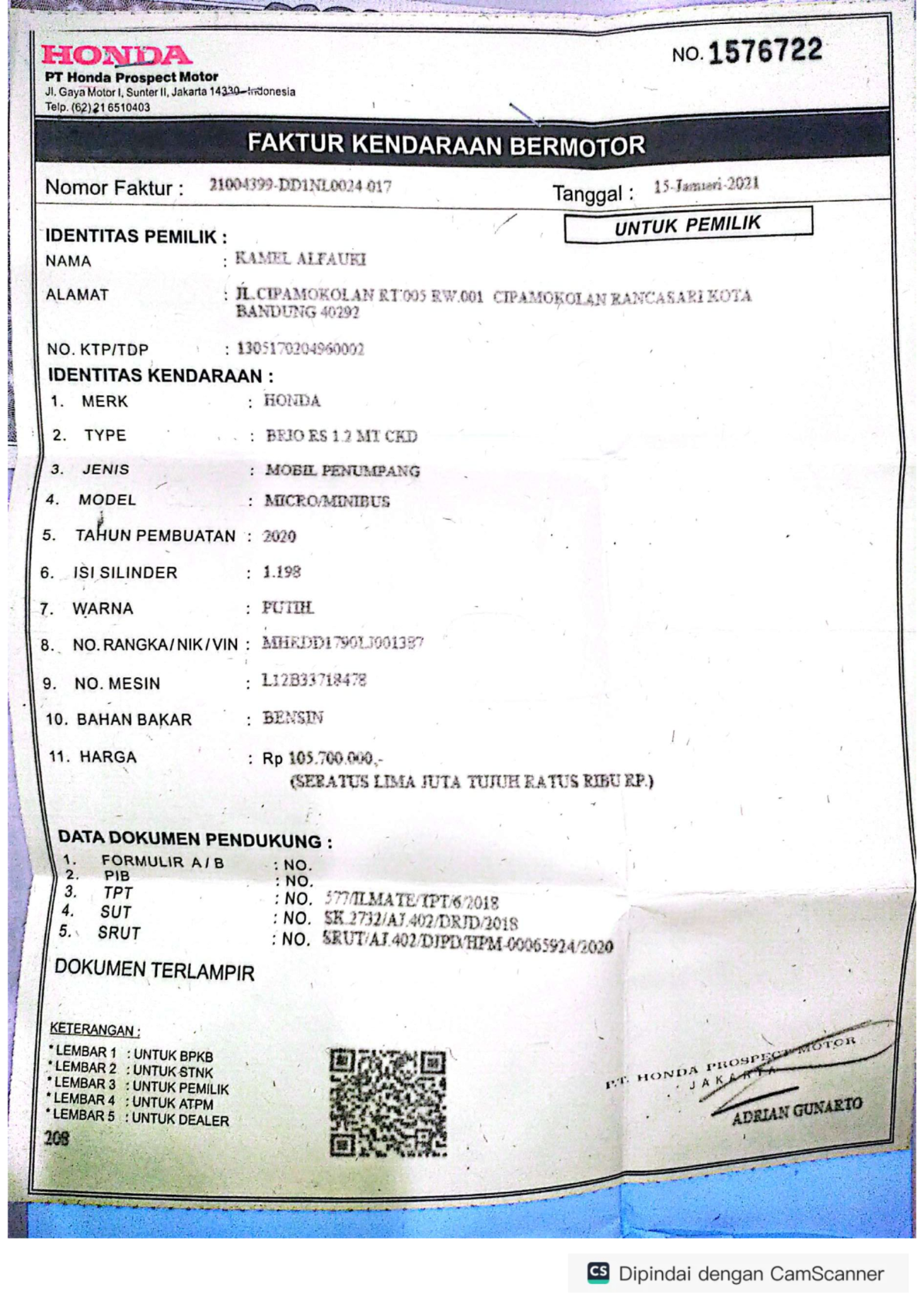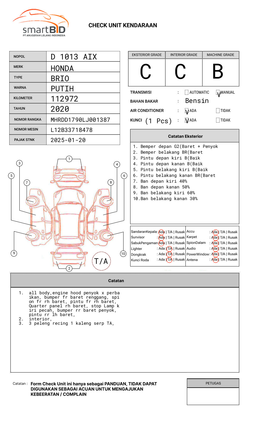 SEBELUM MELAKUKAN PENAWARAN UNIT PESERTA LELANG WAJIB MELAKUKAN PENGECEKAN UNIT DAN DOKUMEN TERLEBIH DAHULU // PIC DENNY : 0852-9442-5362 // UNIT DIKENAKAN BIAYA PPN 1.1% DARI HARGA TERBENTUK //