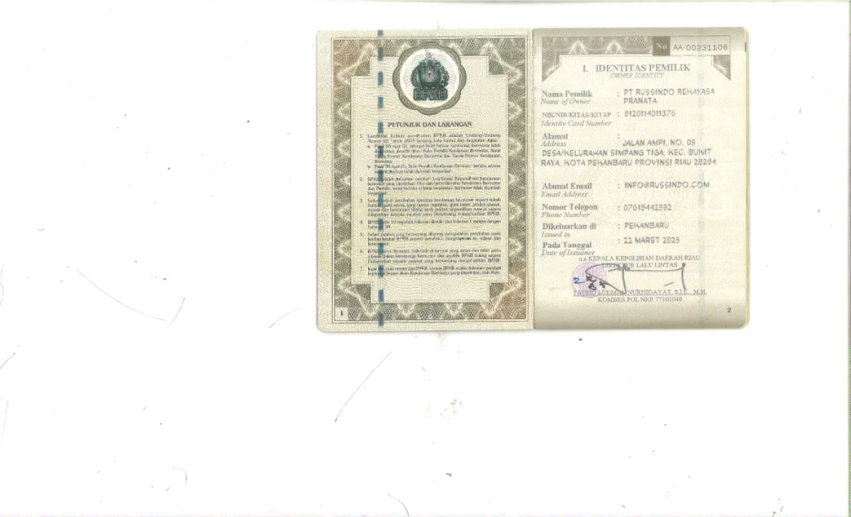 | No. Polisi | : | BM 8640 NO |