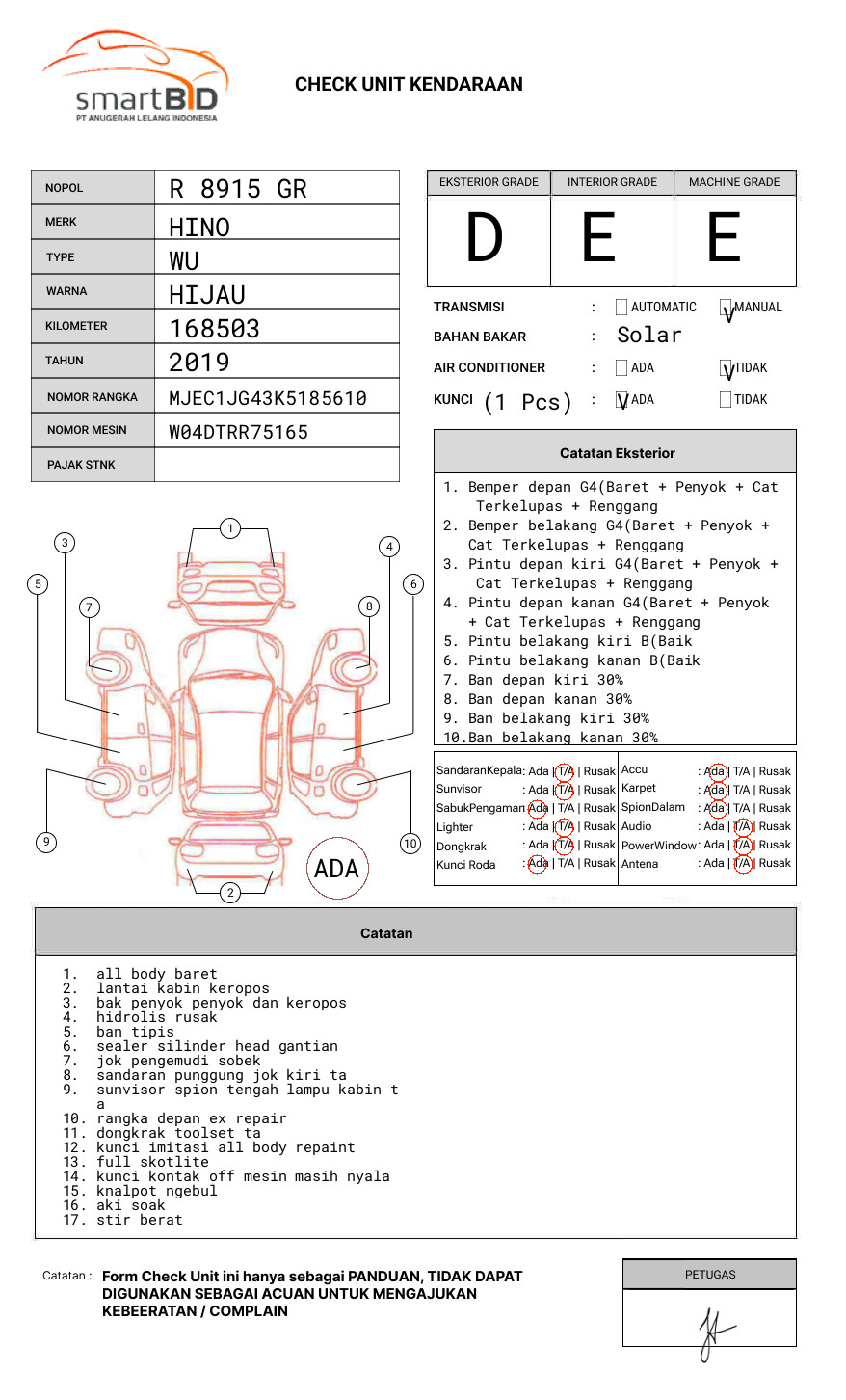 SEBELUM MELAKUKAN PENAWARAN UNIT PESERTA LELANG WAJIB MELAKUKAN PENGECEKAN UNIT DAN DOKUMEN TERLEBIH DAHULU //WANDA :62 858-6767-0166 // UNIT DIKENAKAN BIAYA PPN 1.1% DARI HARGA TERBENTUK //