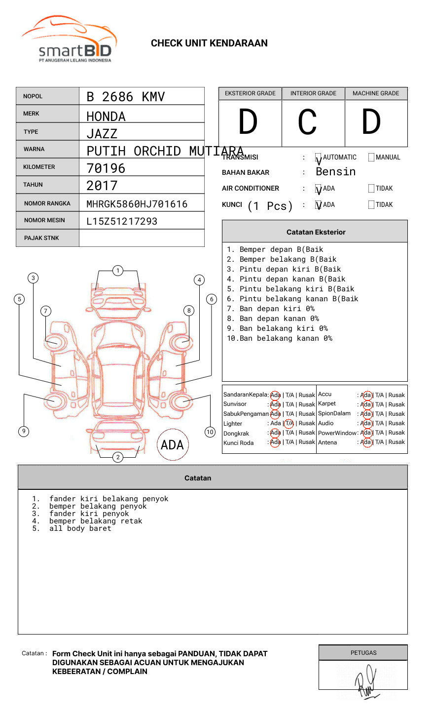 | STNK | : | Tidak Ada |