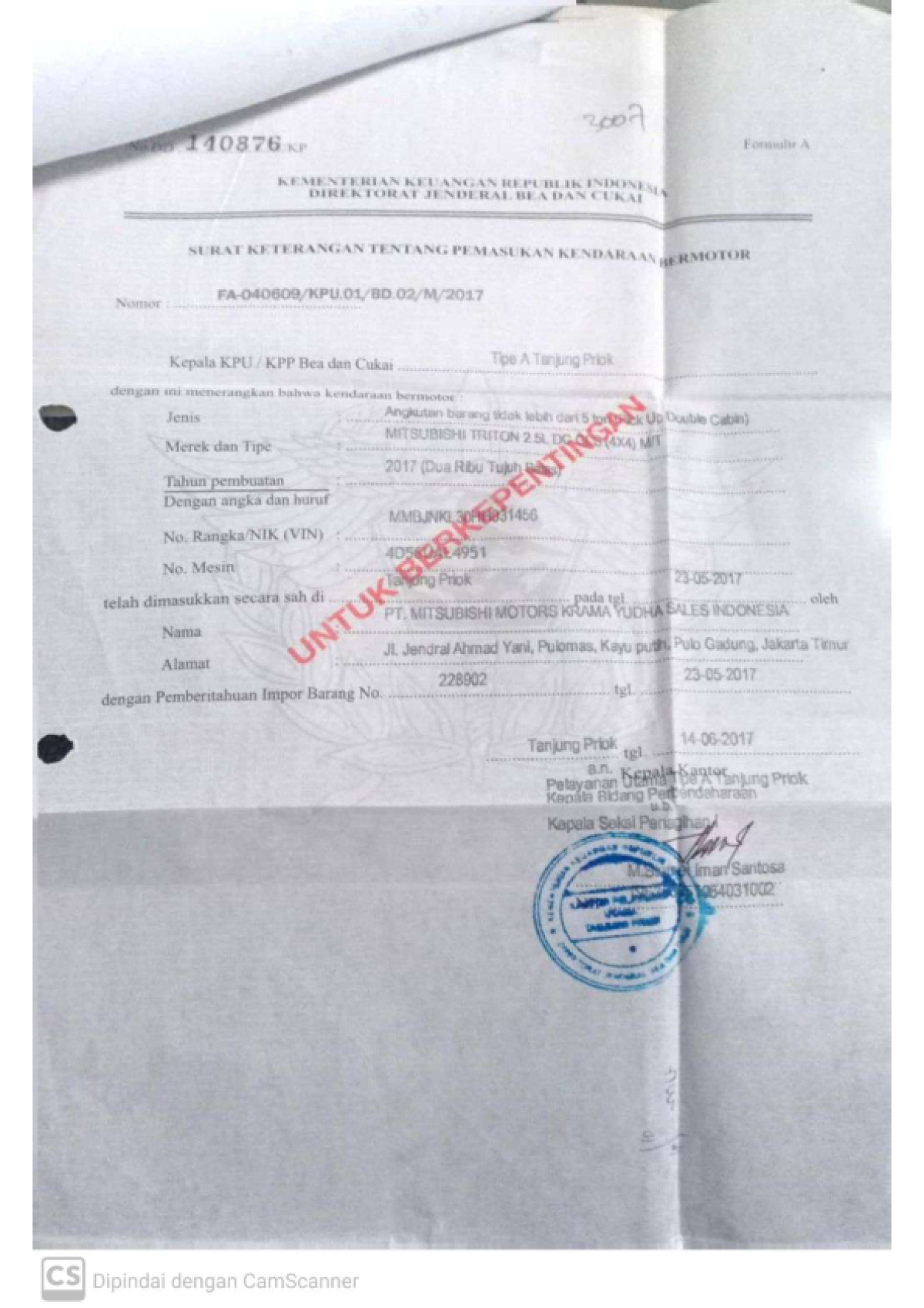| KWT Blangko | : | Tidak Ada |