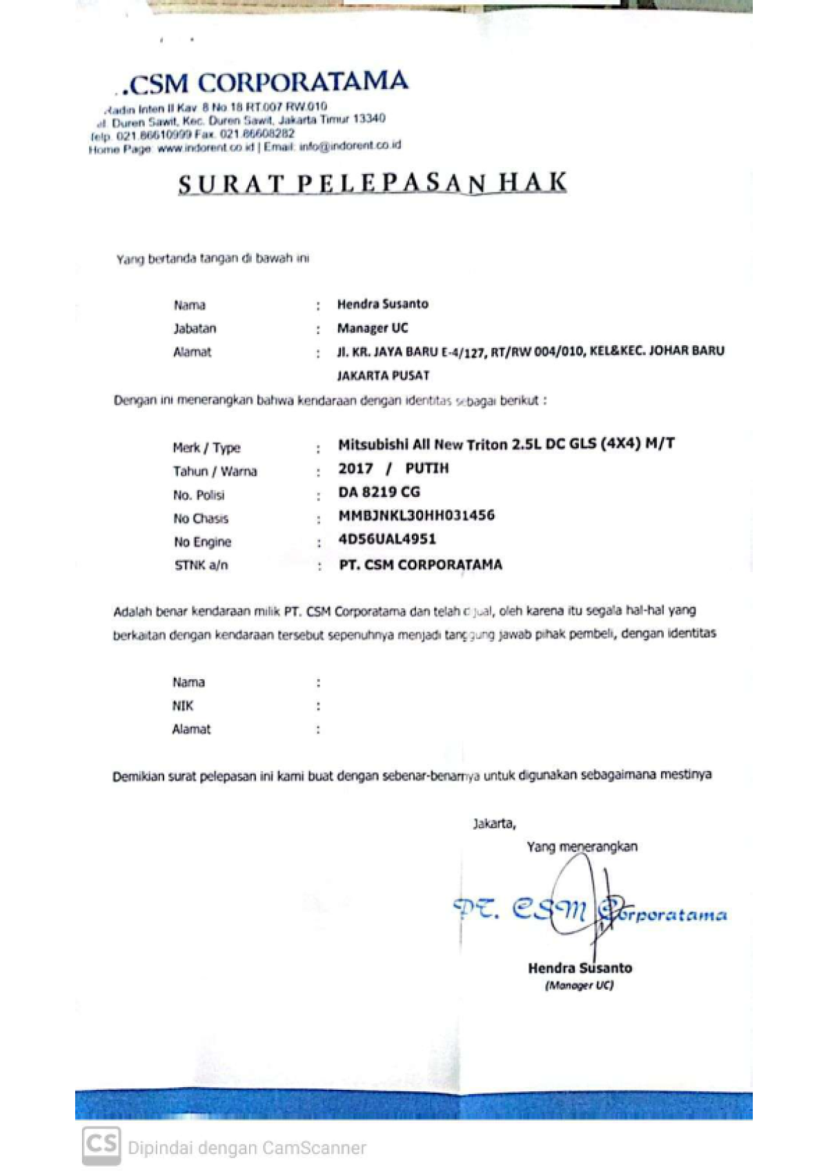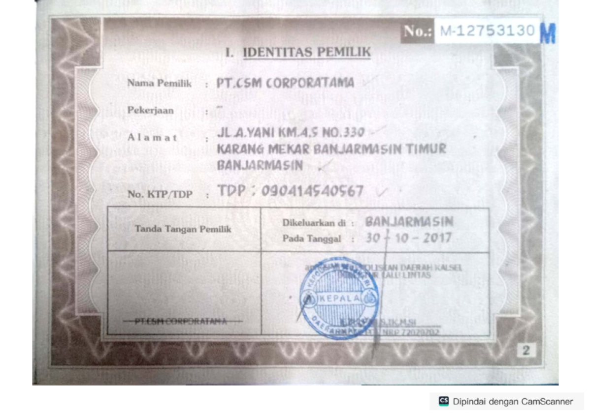 | No. Polisi | : | DA 8219 CG |