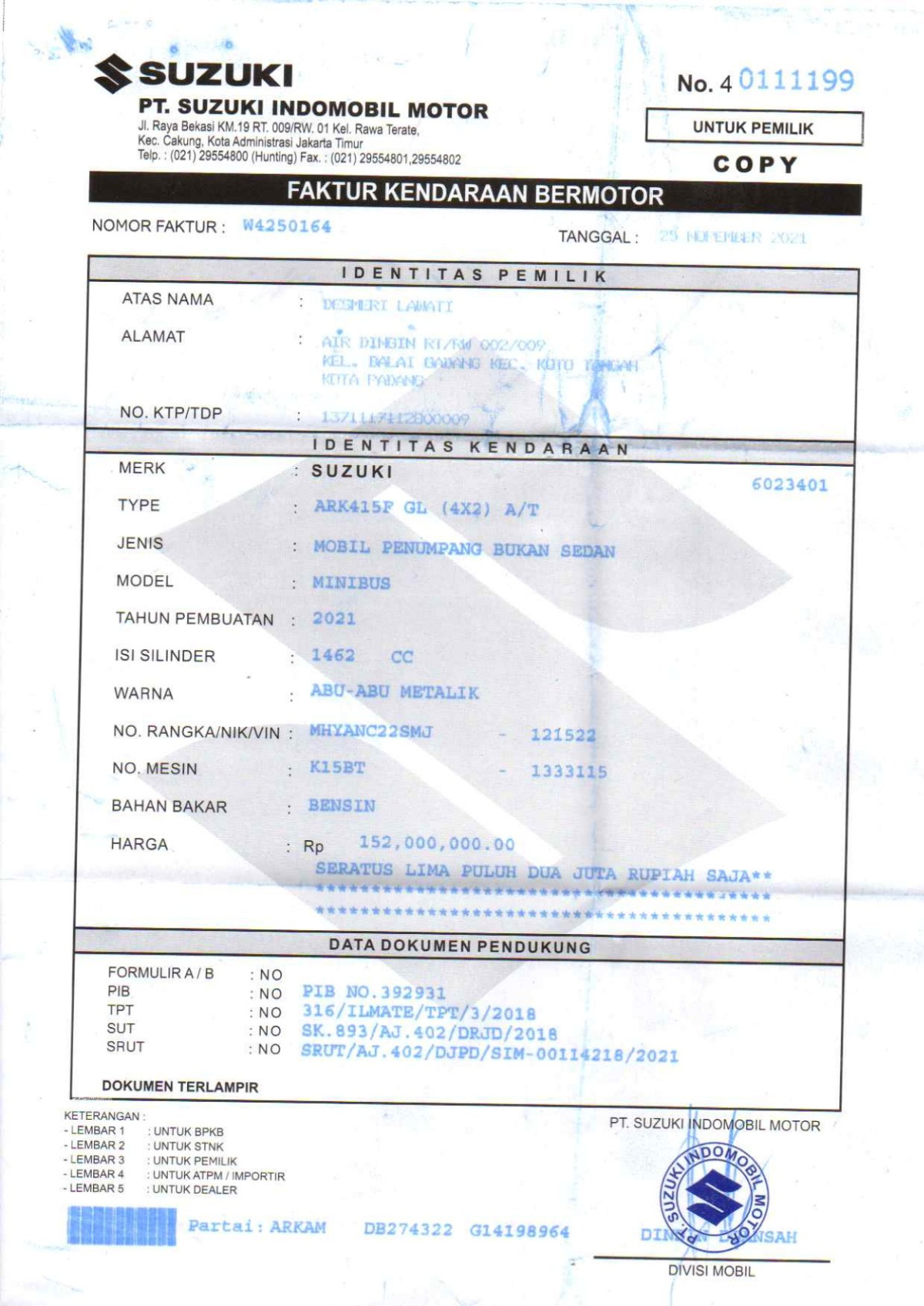 STNK | : | Tidak Ada |