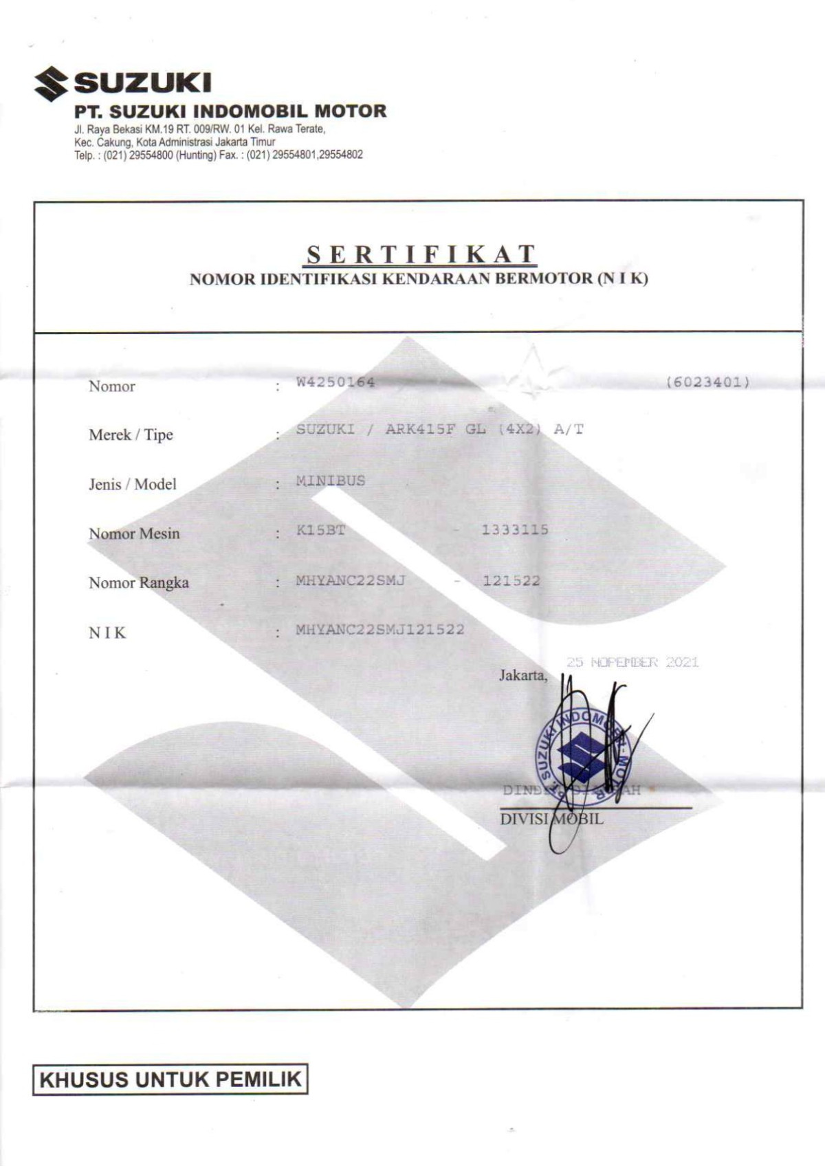 No. Mesin | : | K15BT1333115 |