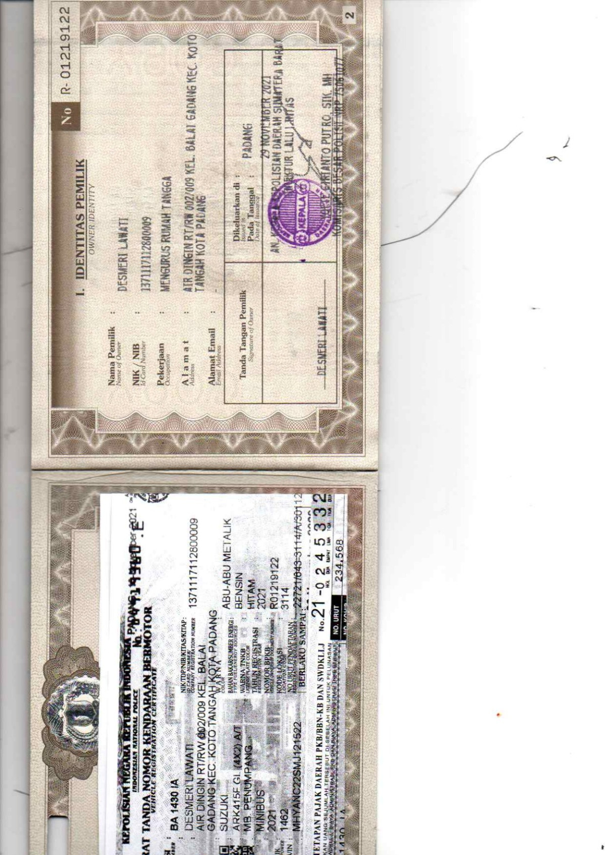 No. Polisi | : | BA 1430 IA |