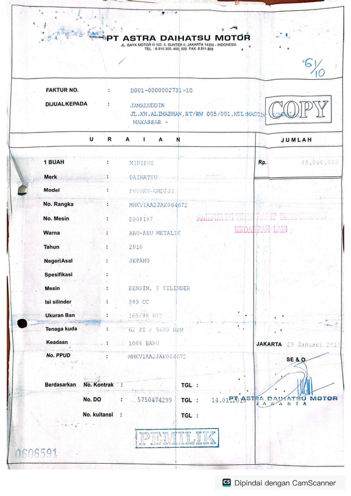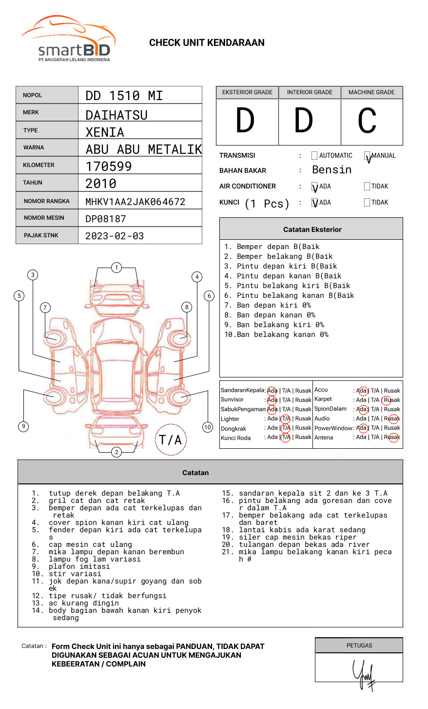 SEBELUM MELAKUKAN PENAWARAN UNIT PESERTA LELANG WAJIB MELAKUKAN PENGECEKAN UNIT DAN DOKUMEN TERLEBIH DAHULU // PIC PUTRA:0813-5153-9927 / DEFRIZAL 0822-5386-2420 // UNIT DIKENAKAN BIAYA PPN 1.1% DARI HARGA TERBENTUK //