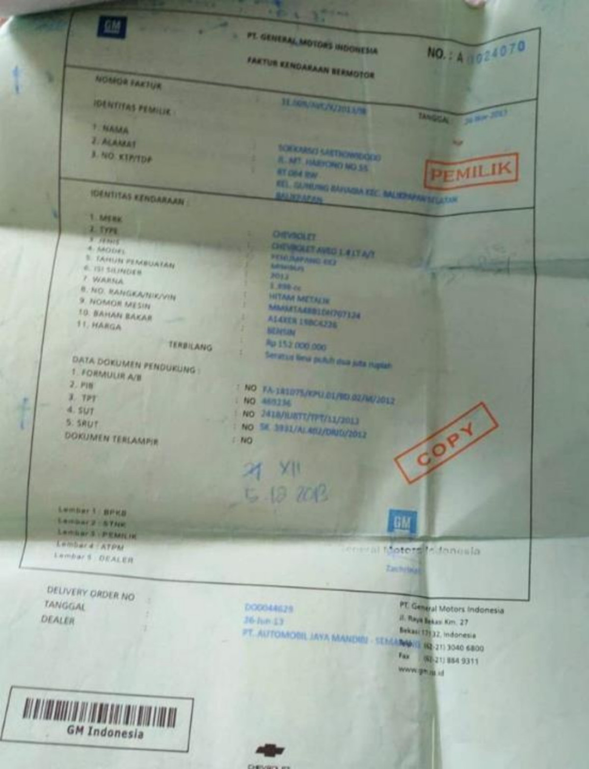 | STNK | : | Tidak Ada |