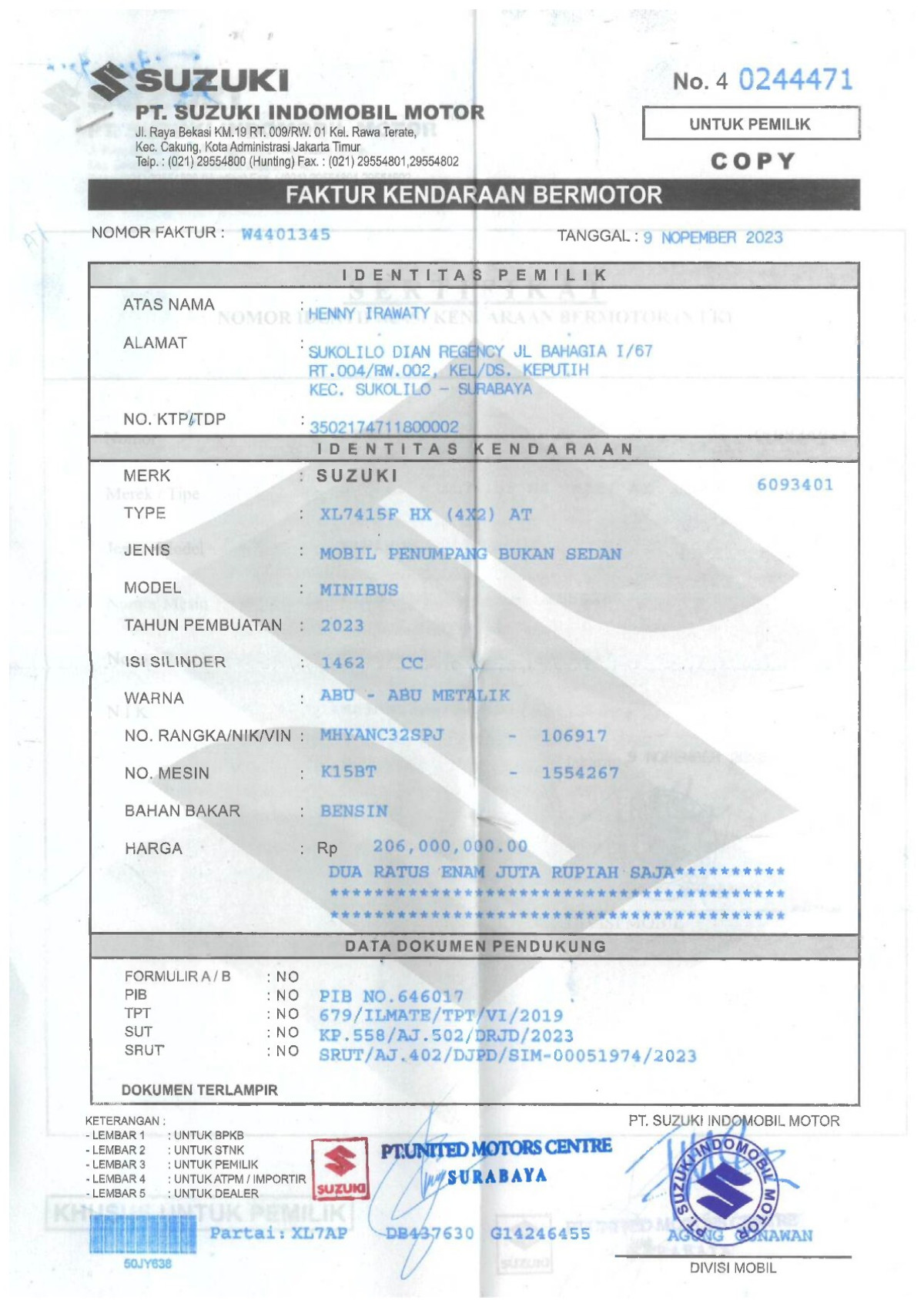 SEBELUM MELAKUKAN PENAWARAN UNIT PESERTA LELANG WAJIB MELAKUKAN PENGECEKAN UNIT DAN DOKUMEN TERLEBIH DAHULU // PIC AWAL +62 895-3231-57272 / ANDRI 085136886212 // UNIT DIKENAKAN BIAYA PPN 1.2% DARI HARGA TERBENTUK