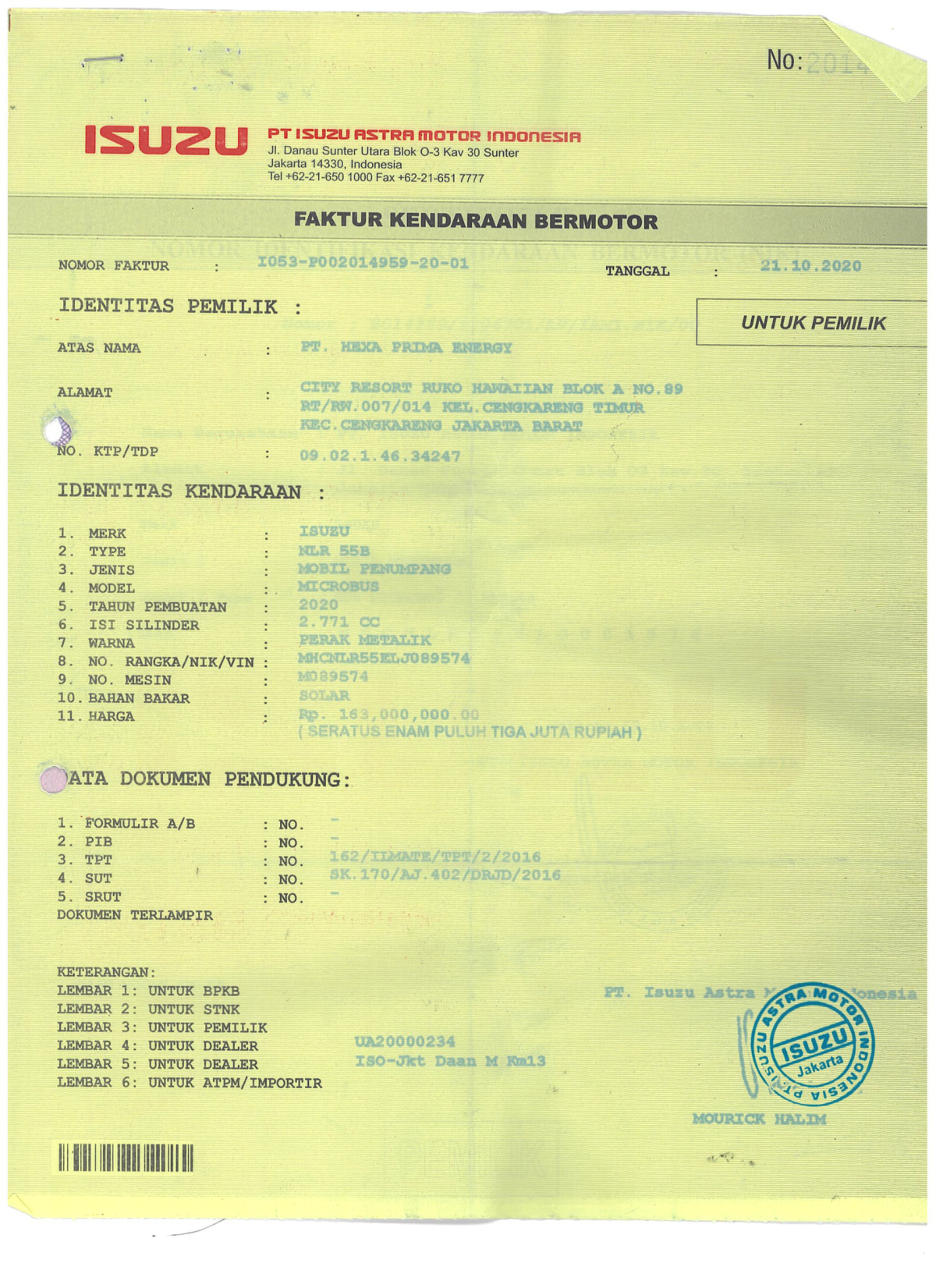 No. Rangka | : | MHCNLR55ELJ089574 |
