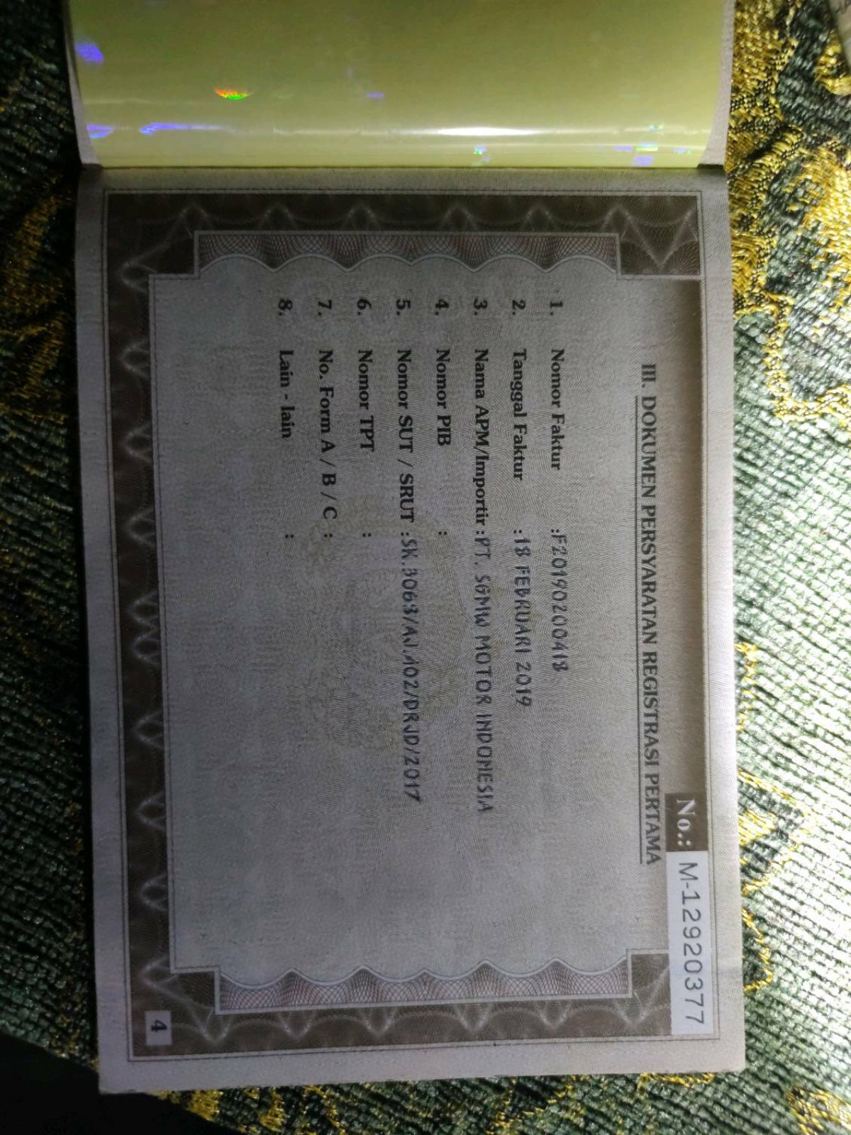 No. Rangka | : | MK3AAAGA4JJ009401 |