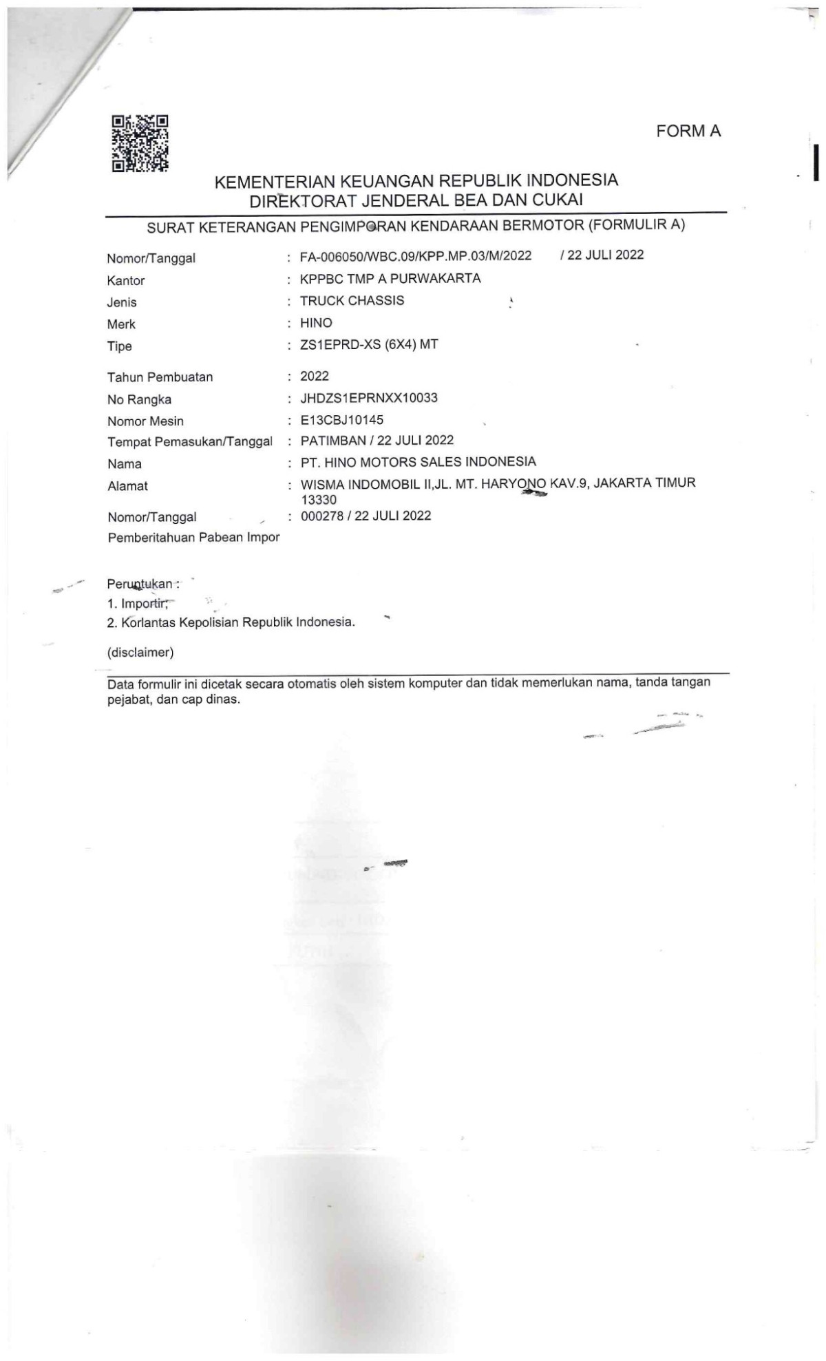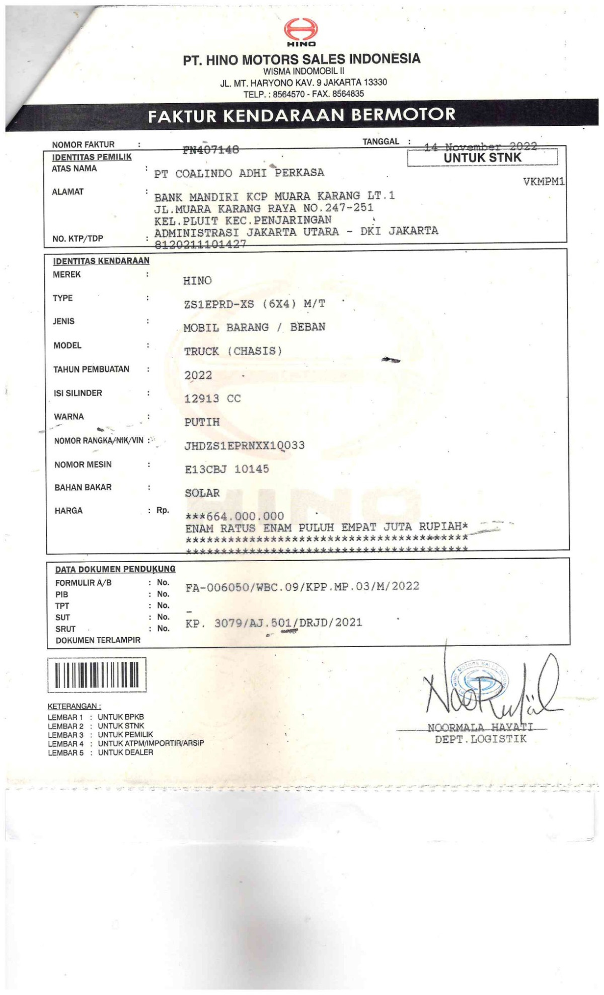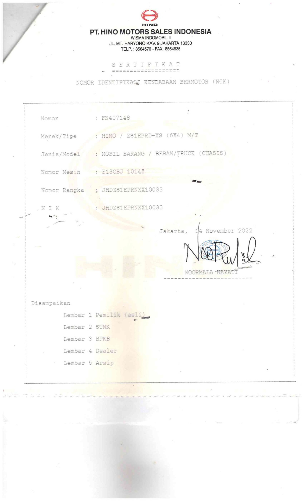 No. Polisi | : | JHDZS1EPRNXX10033 |