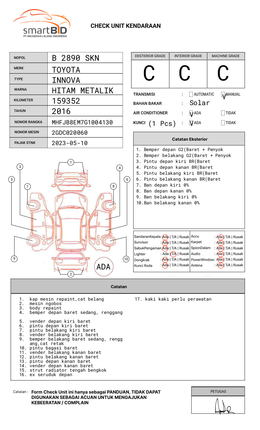 SEBELUM MELAKUKAN PENAWARAN UNIT PESERTA LELANG WAJIB MELAKUKAN PENGECEKAN UNIT DAN DOKUMEN TERLEBIH DAHULU // PEMENANG LELANG DIKENAKAN BIAYA PPN 1.1% DARI HARGA TERBENTUK // PIC AWAL +62 895-3231-57272 / ANDRI 085136886212 //