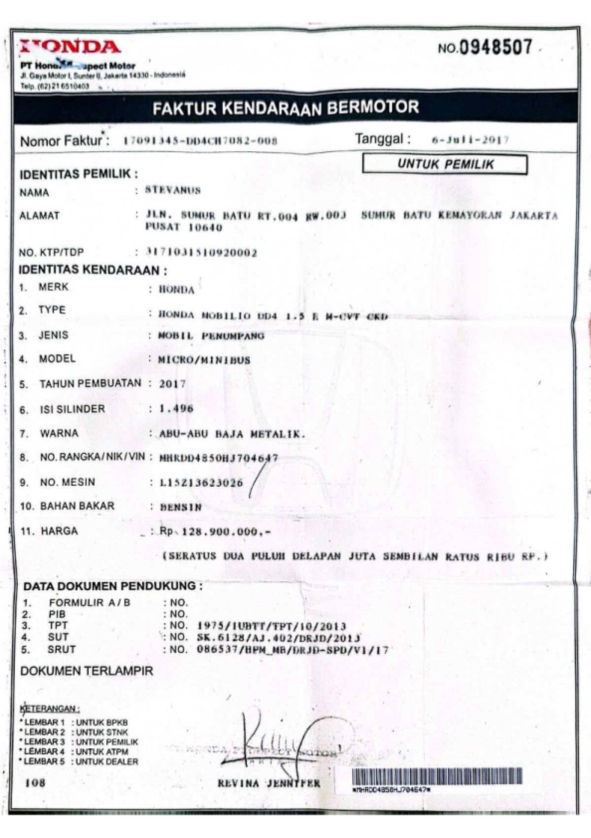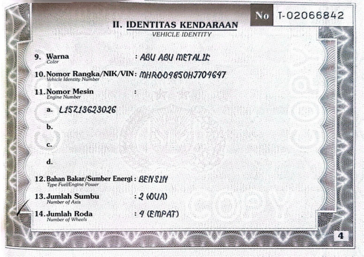 | No. Rangka | : | MHRDD4850HJ704647 |