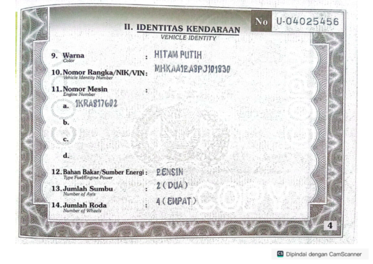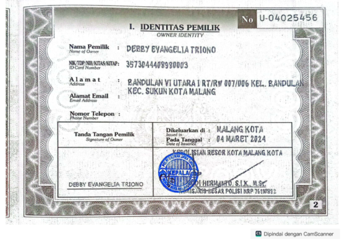 | STNK | : | Ada |