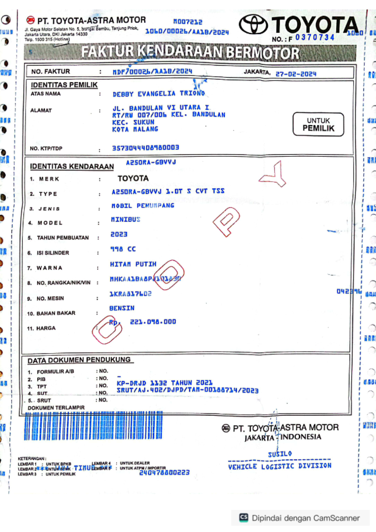 | No. Polisi | : | N 1294 ACJ |