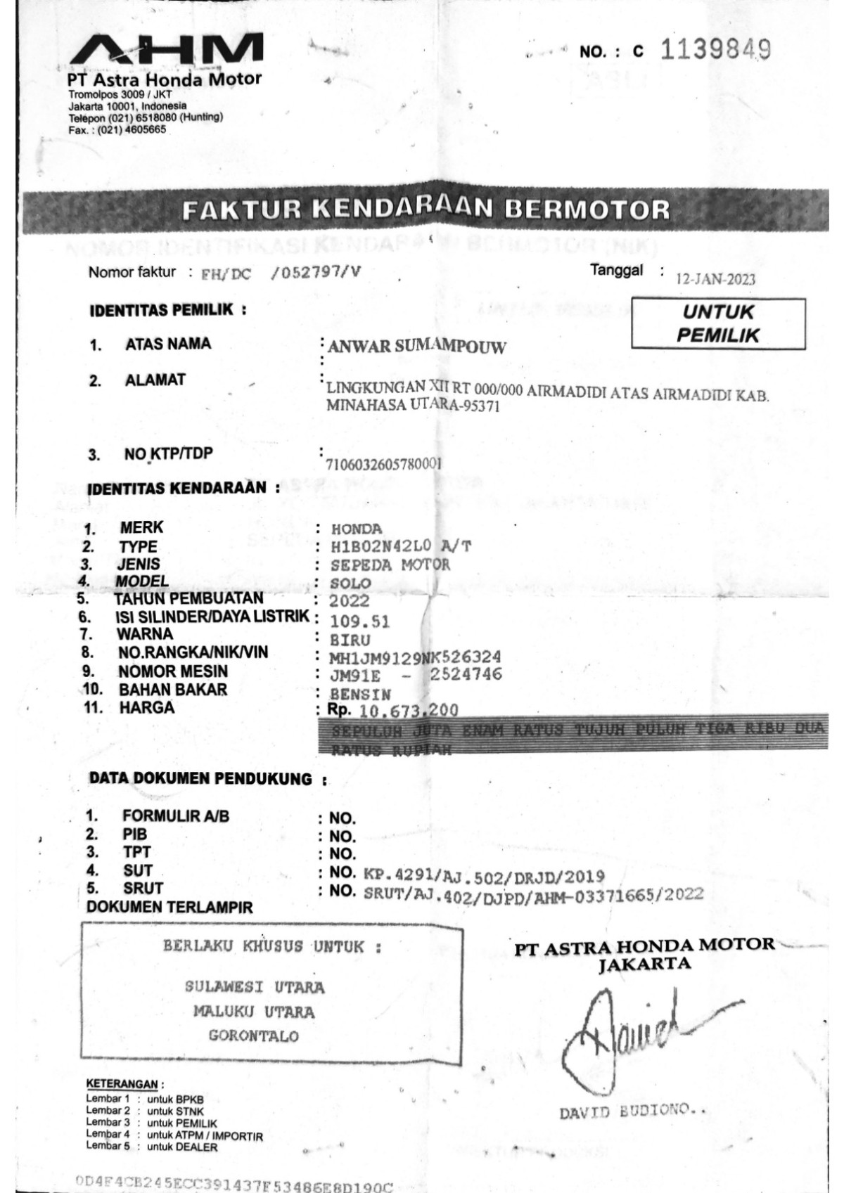 SEBELUM MELAKUKAN PENAWARAN UNIT PESERTA LELANG WAJIB MELAKUKAN PENGECEKAN UNIT DAN DOKUMEN TERLEBIH DAHULU // PIC ERWIN +62 852-5532-9221 / SARDIMAN 089523807733 // UNIT DIKENAKAN BIAYA PPN 1.1% DARI HARGA TERBENTUK //