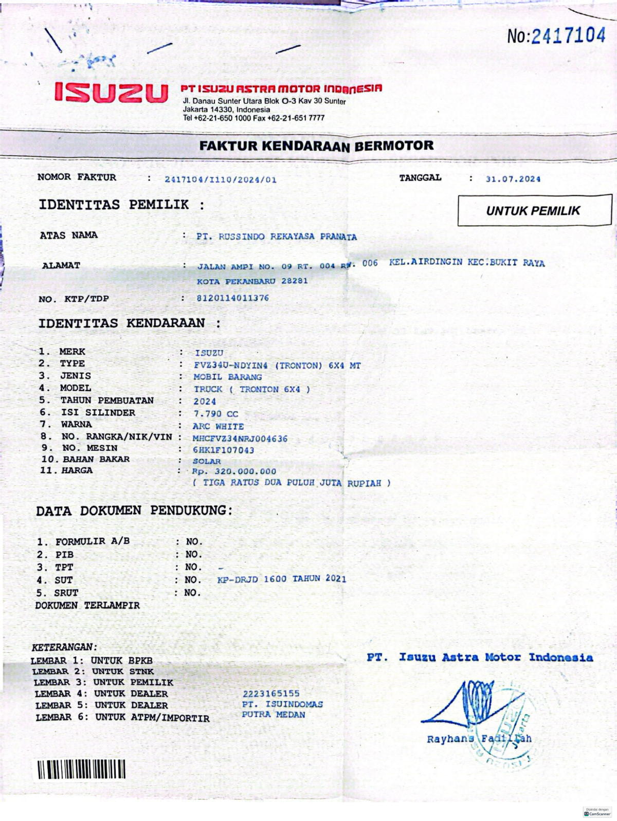 PEMENANG LELANG DIKENAKAN BIAYA MOBILISASI RP.300.000//SEBELUM MELAKUKAN PENAWARAN UNIT PESERTA LELANG WAJIB MELAKUKAN PENGECEKAN UNIT DAN DOKUMEN TERLEBIH DAHULU // PIC JHONY : +62 813-7163-4690 // UNIT DIKENAKAN BIAYA PPN 1.1% DARI HARGA TERBENTUK // JANBOY :+62 821-6954-4266