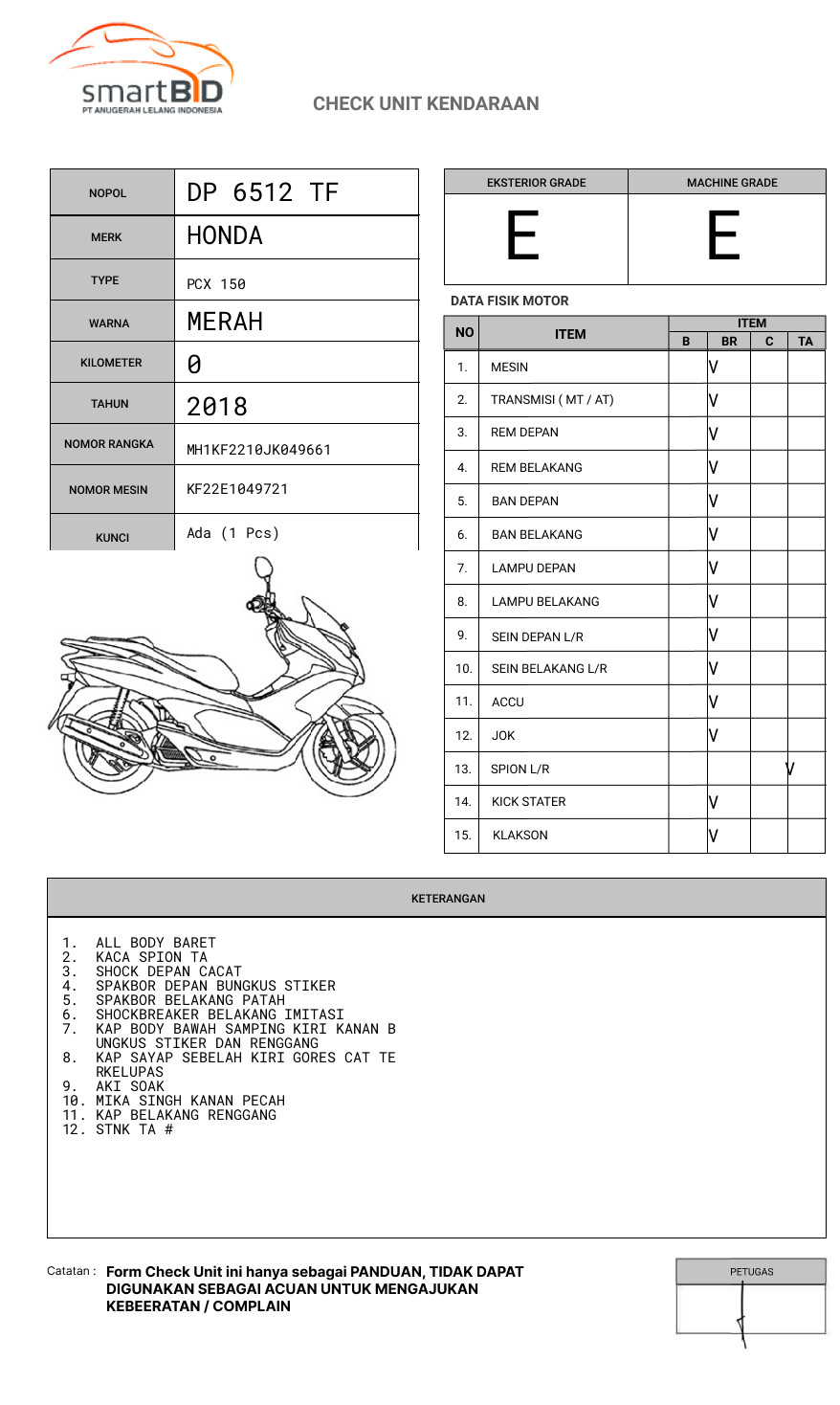 SEBELUM MELAKUKAN PENAWARAN UNIT PESERTA LELANG WAJIB MELAKUKAN PENGECEKAN UNIT DAN DOKUMEN TERLEBIH DAHULU // PIC RUDAL 0821 9140 0425 // UNIT DIKENAKAN BIAYA PPN 1.1% DARI HARGA TERBENTUK //