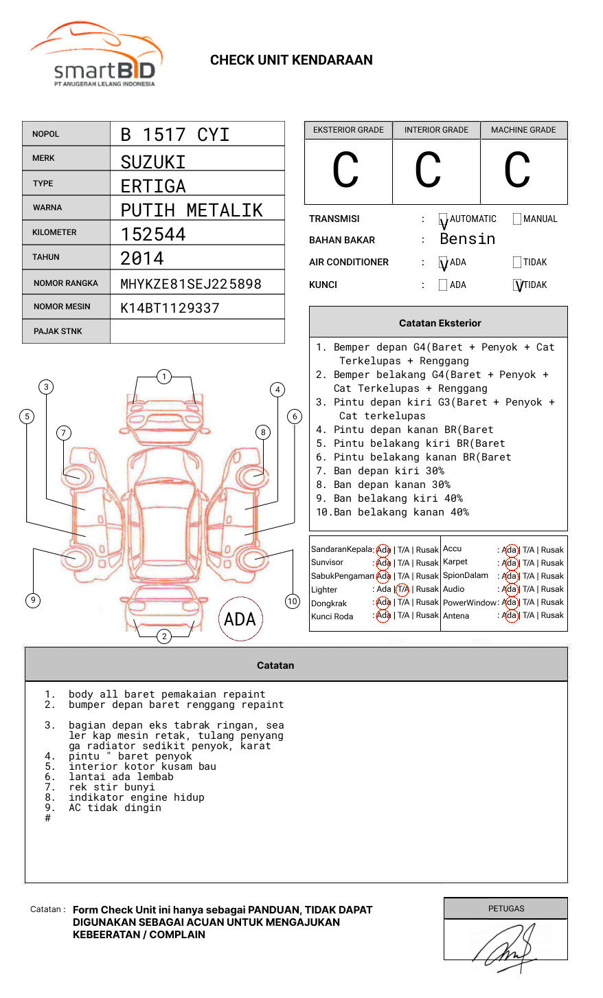 SEBELUM MELAKUKAN PENAWARAN HARAP CEK KONDISI UNIT SERTA DOKUMEN TERLEBIH DAHULU// UNIT DIKENAKAN BIAYA PPN 1,1% DARI HARGA TERBENTUK// 1 DIGIT AKHIR NOSIN FISIK TIDAK TERJANGKAU (TERHALANG)// PIC MAS UD : 081213061687