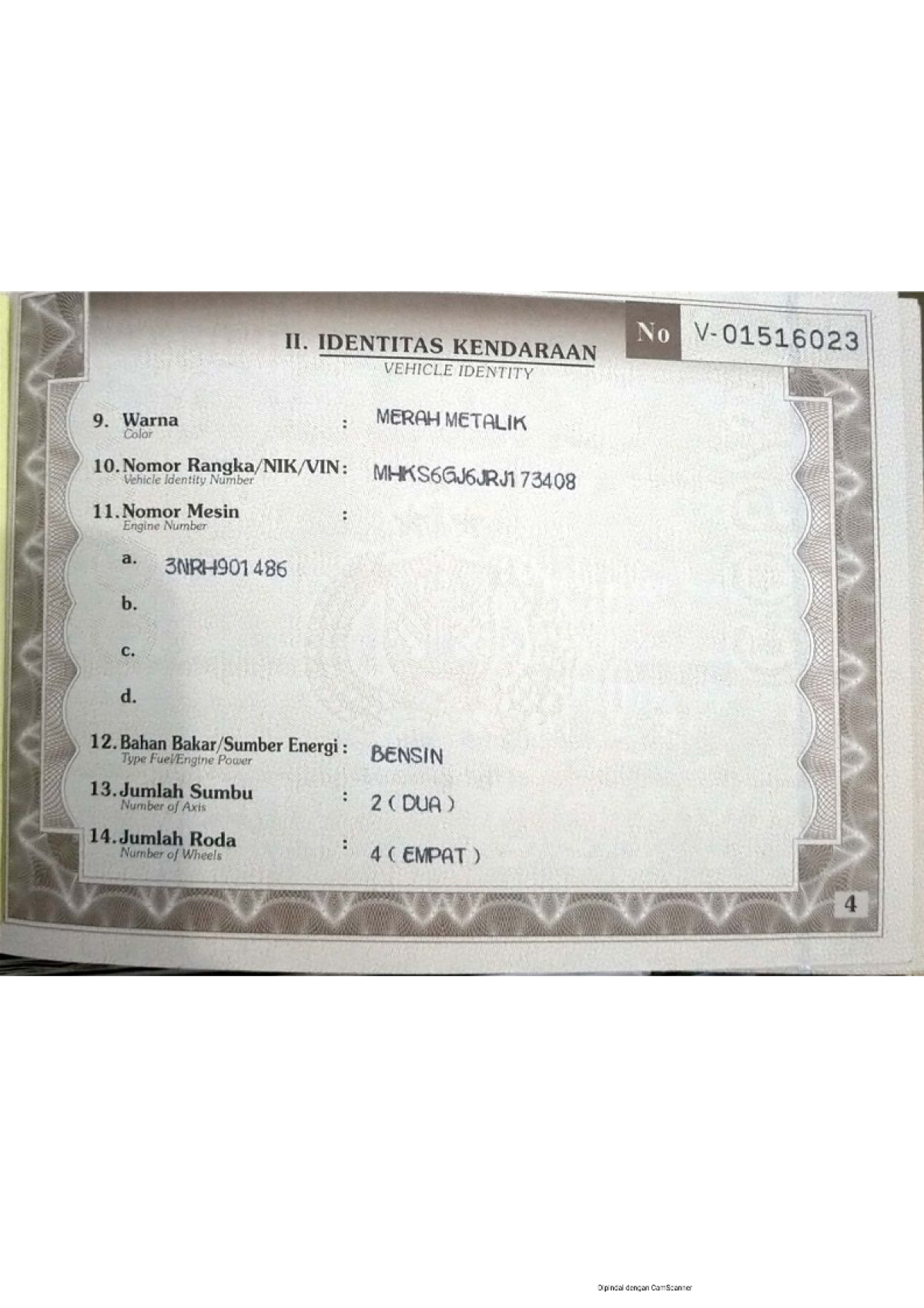 | No. Rangka | : | MHKS6GJ6JRJ173408 |