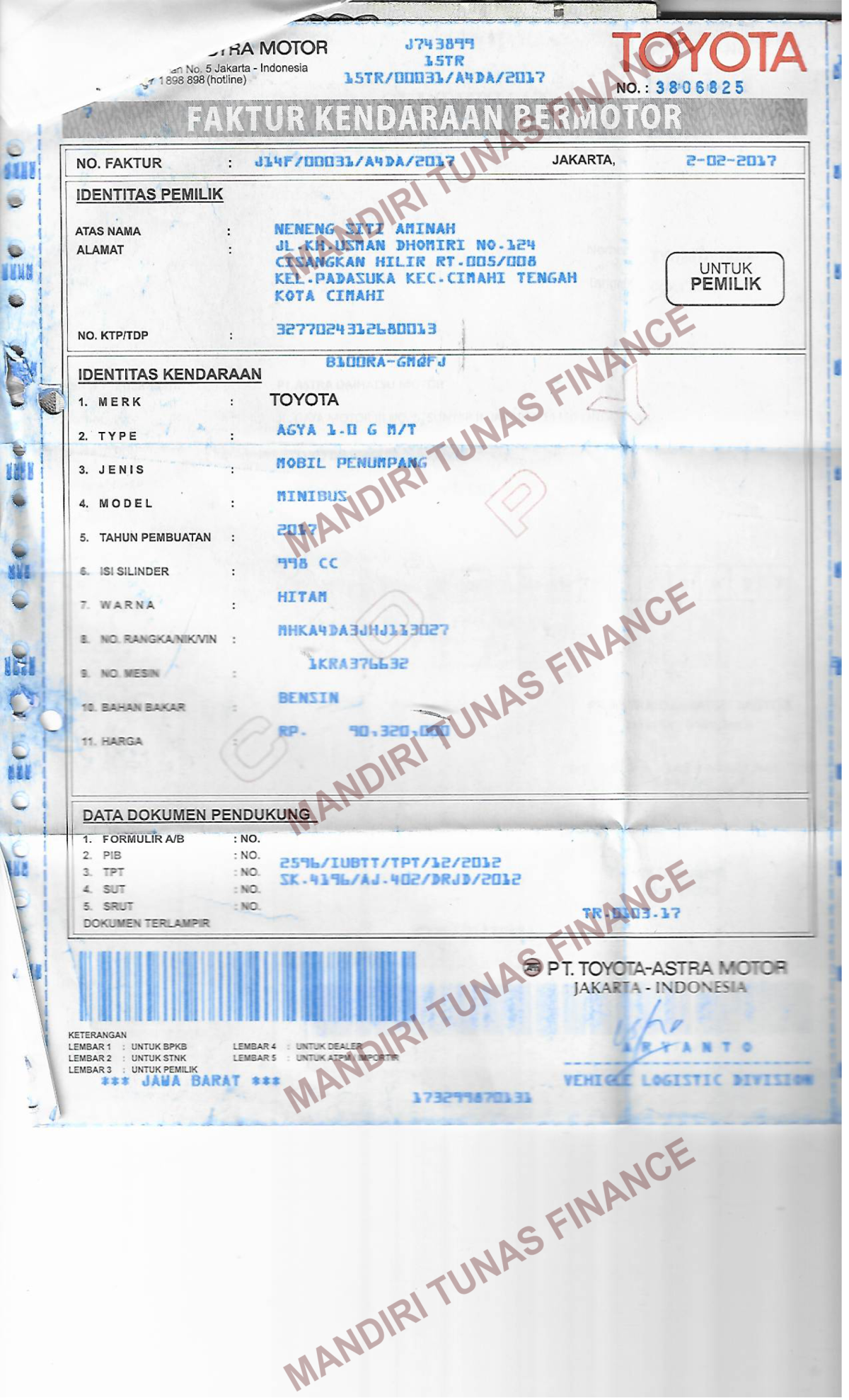 No. Rangka | : | MHKA4DA3JHJ113027 |