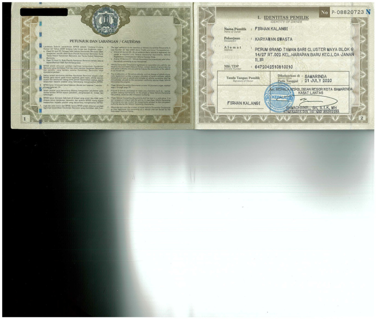 | No. Polisi | : | KT 1157 MJ |