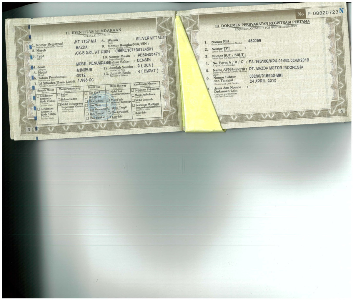 | No. Rangka | : | JM6KE1071D0124501 |