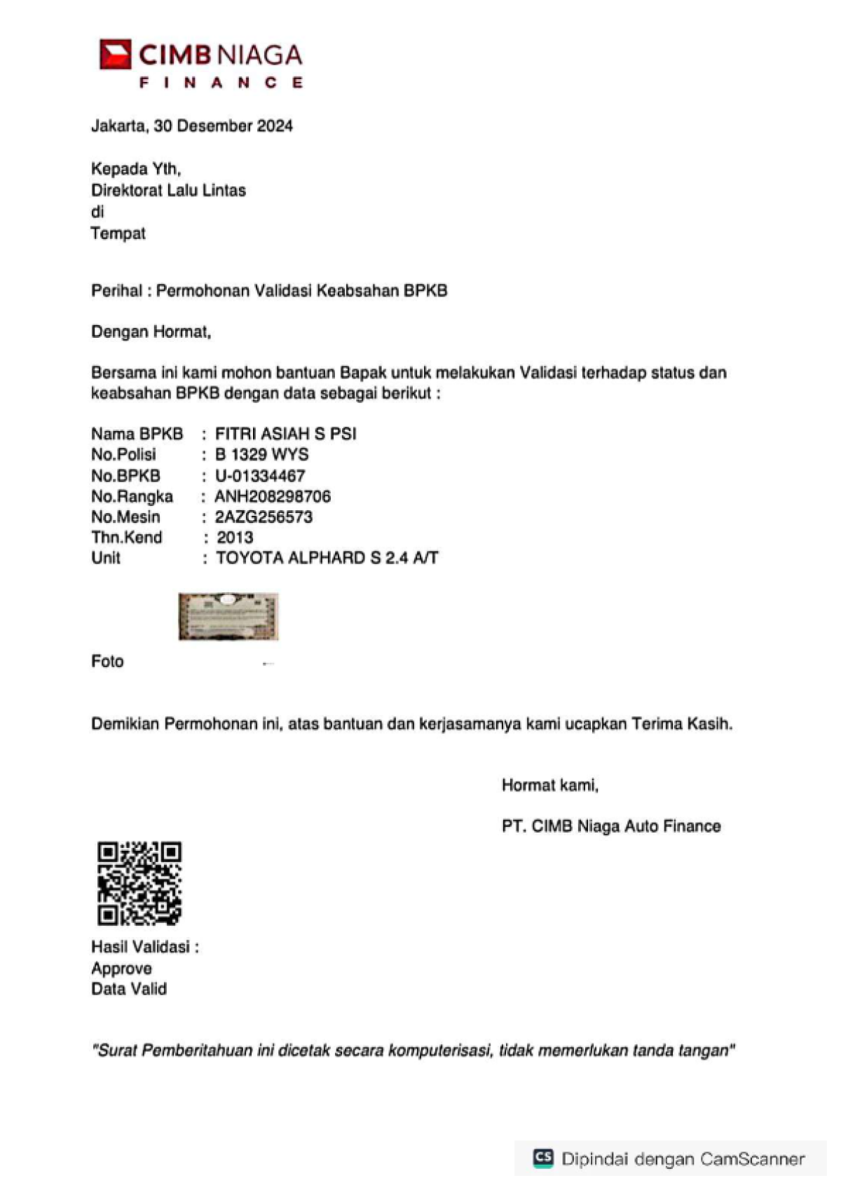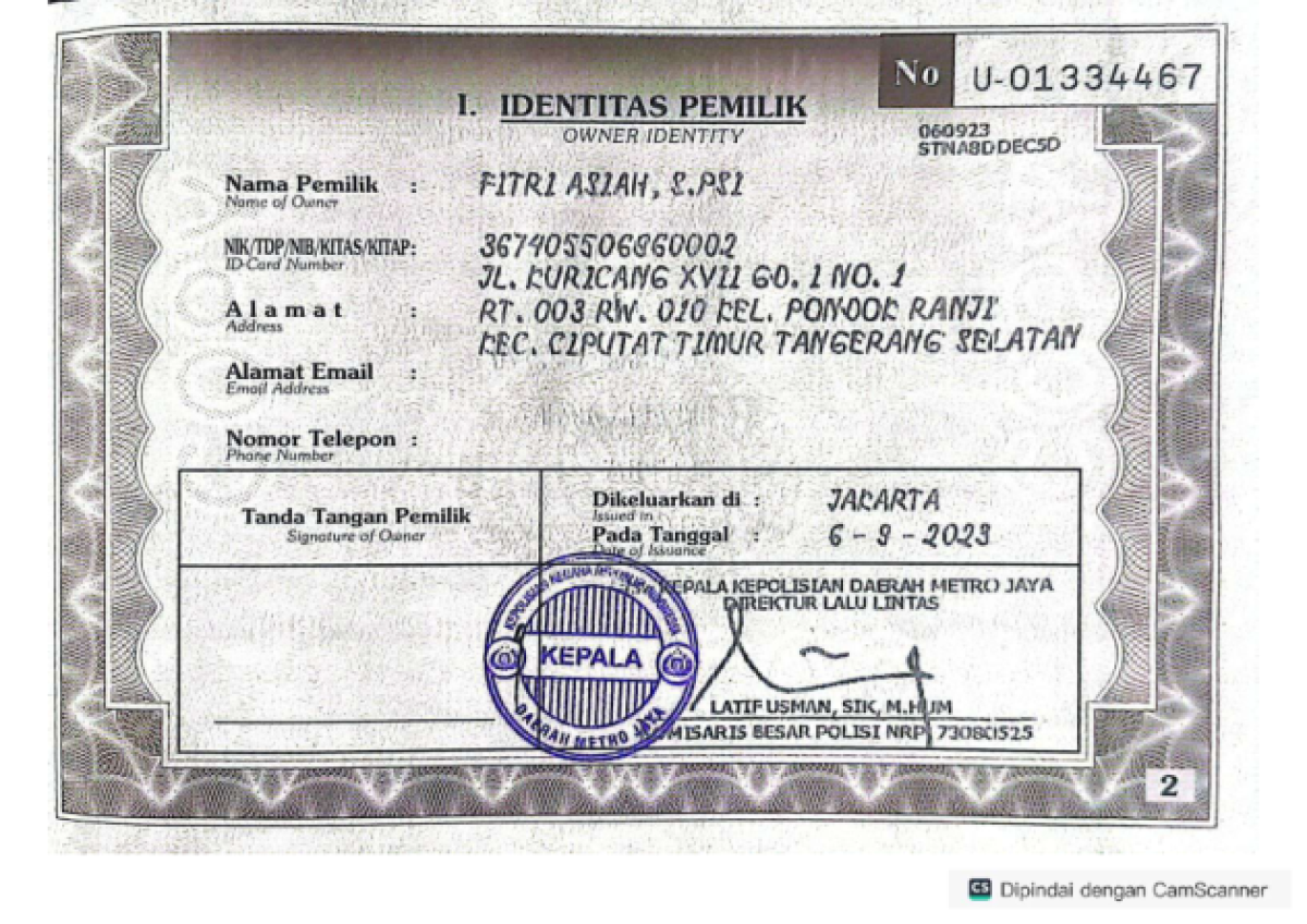 No. Polisi | : | B 1329 WYS |