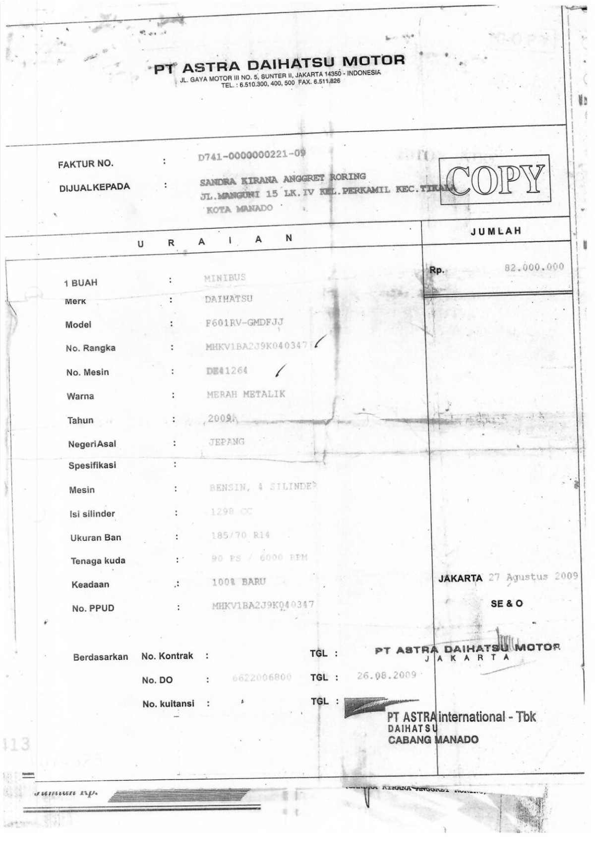 SEBELUM MELAKUKAN PENAWARAN UNIT PESERTA LELANG WAJIB MELAKUKAN PENGECEKAN UNIT DAN DOKUMEN TERLEBIH DAHULU // PIC ERWIN +62 852-5532-9221 / SARDIMAN 089523807733 // UNIT DIKENAKAN BIAYA PPN 1.1% DARI HARGA TERBENTUK //