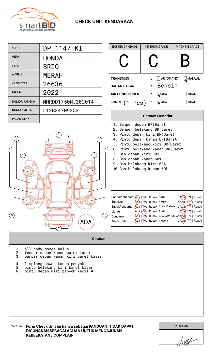 SEBELUM MELAKUKAN PENAWARAN UNIT PESERTA LELANG WAJIB MELAKUKAN PENGECEKAN UNIT DAN DOKUMEN TERLEBIH DAHULU // PIC LULU +62 856-5712-5589//UNIT DIKENAKAN BIAYA PPN 1.1% DARI HARGA TERBENTUK // ADA BIAYA ROYA FIDUSIA 100.000