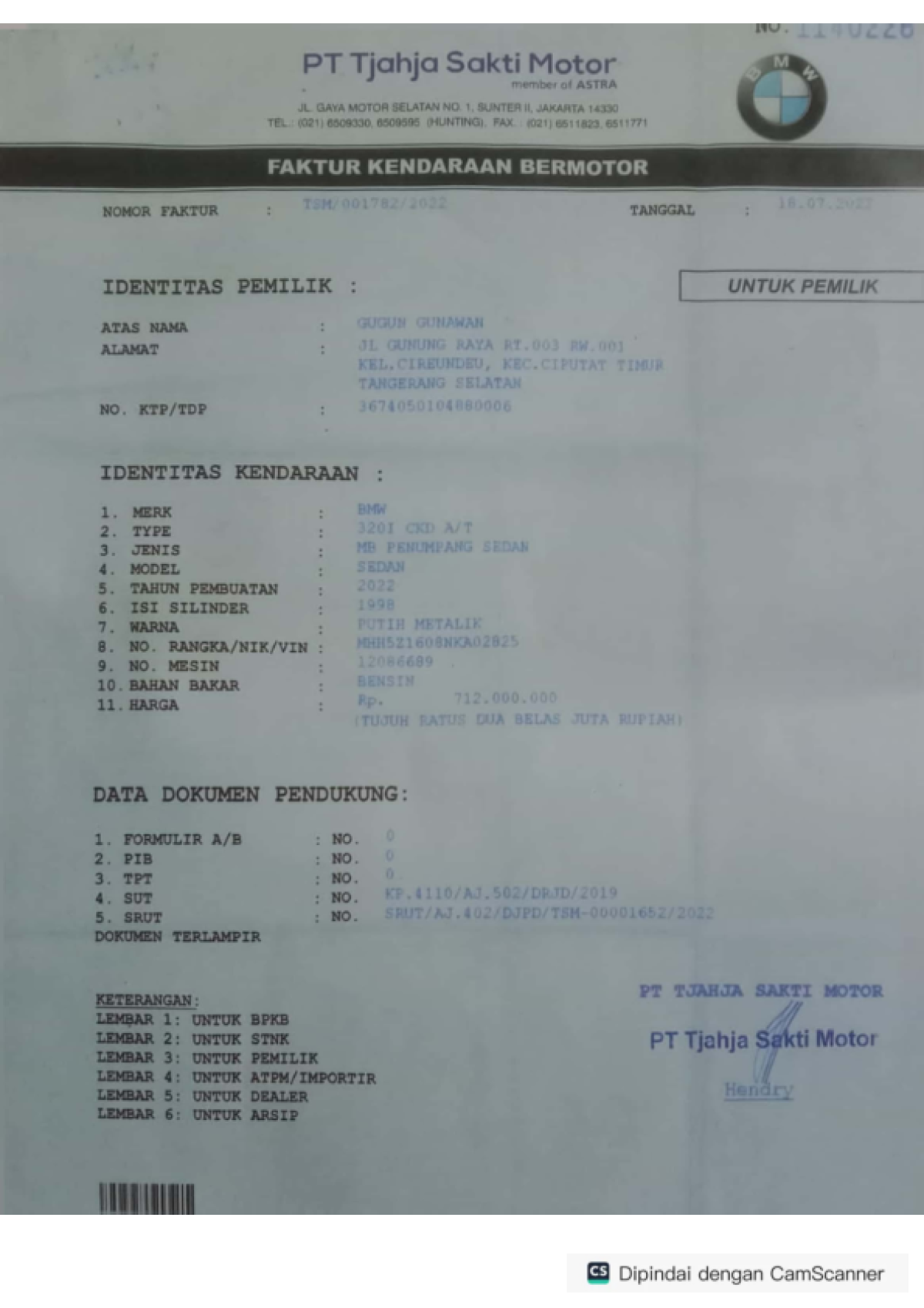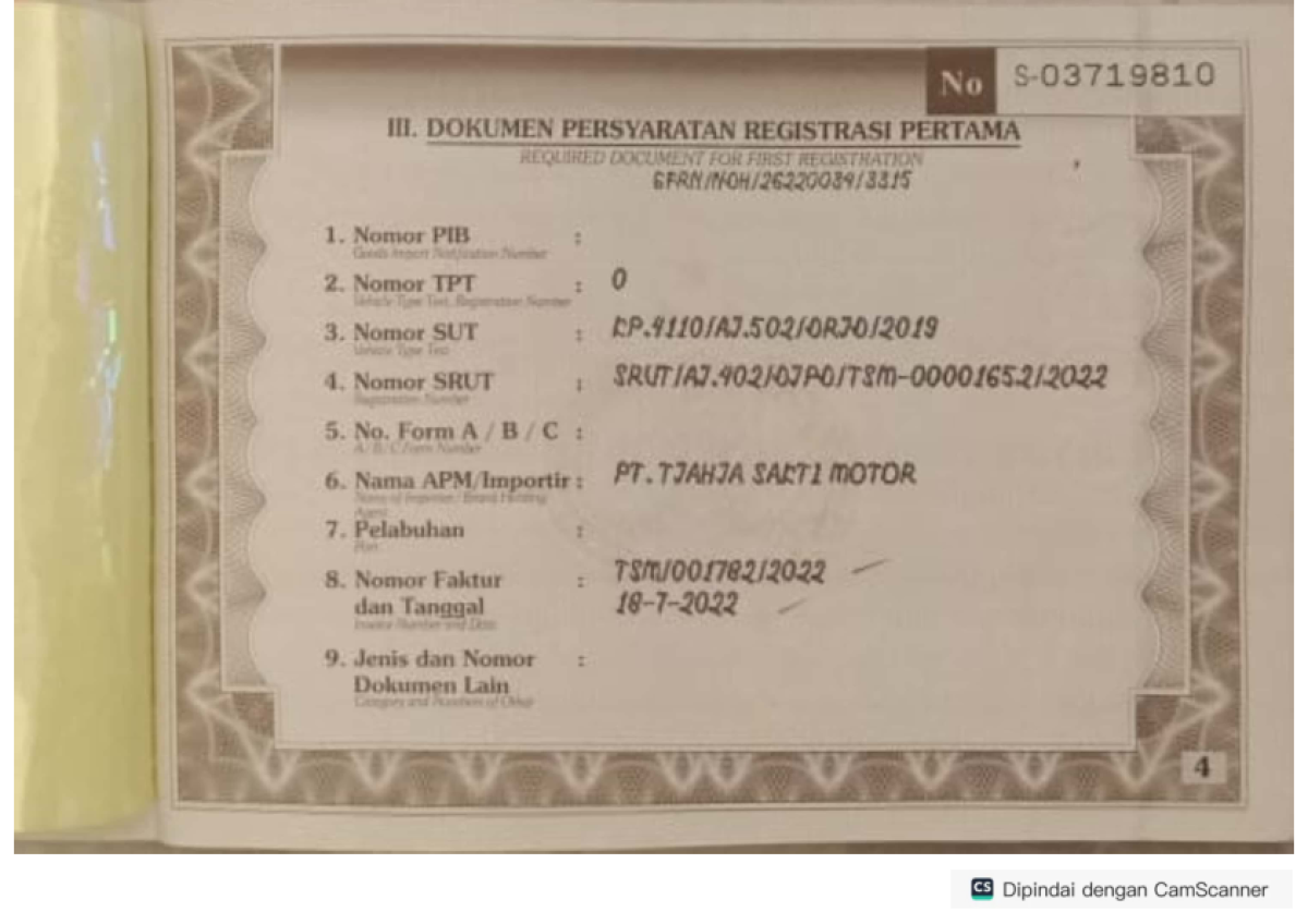 SEBELUM MELAKUKAN PENAWARAN HARAP CEK KONDISI UNIT SERTA DOKUMEN TERLEBIH DAHULU// UNIT DIKENAKAN BIAYA PPN 1,1% DARI HARGA TERBENTUK// TERDAPAT PERBEDAAN NOPOL FISIK DGN DOKUMEN// PADA NOPOL FISIK "B 8988 ZH" SEDANGKAN NOPOL PADA DOKUMEN "B 1019 WAC" INDIKASI NOPOL PALSU/BBN GANTUNG// PIC WAHYU : 082124062748