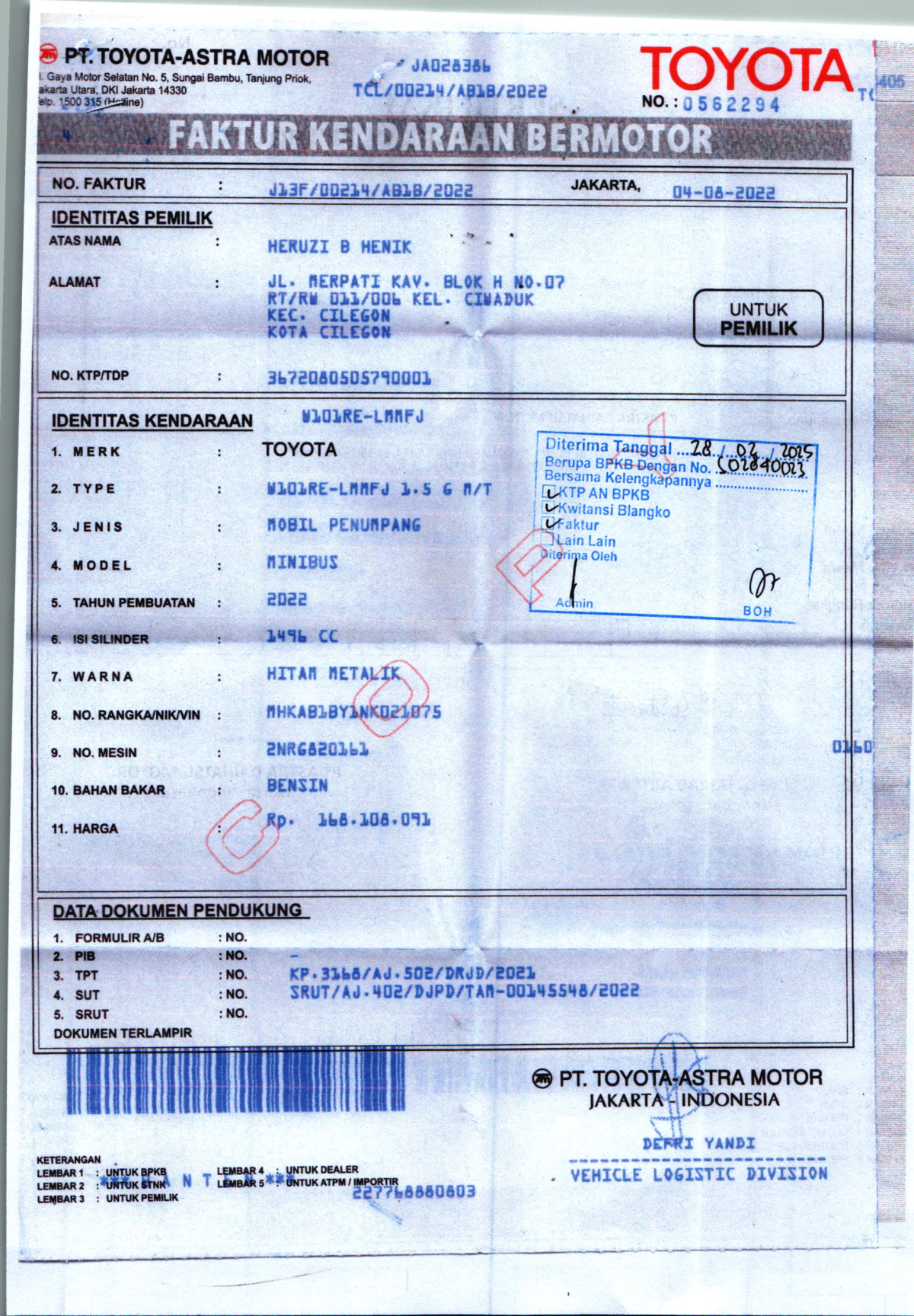 No. Rangka | : | MHKAB1BY1NK021075 |