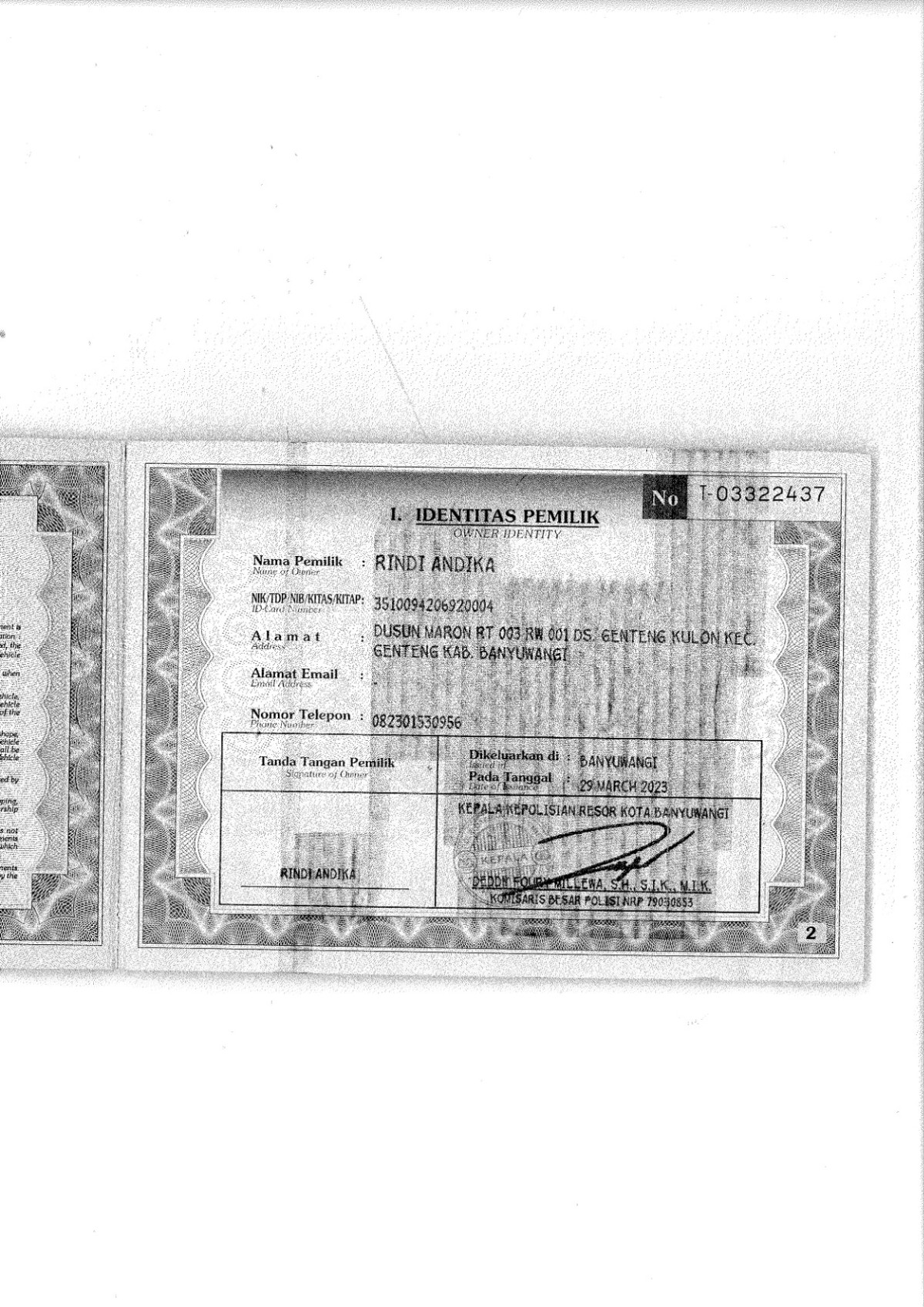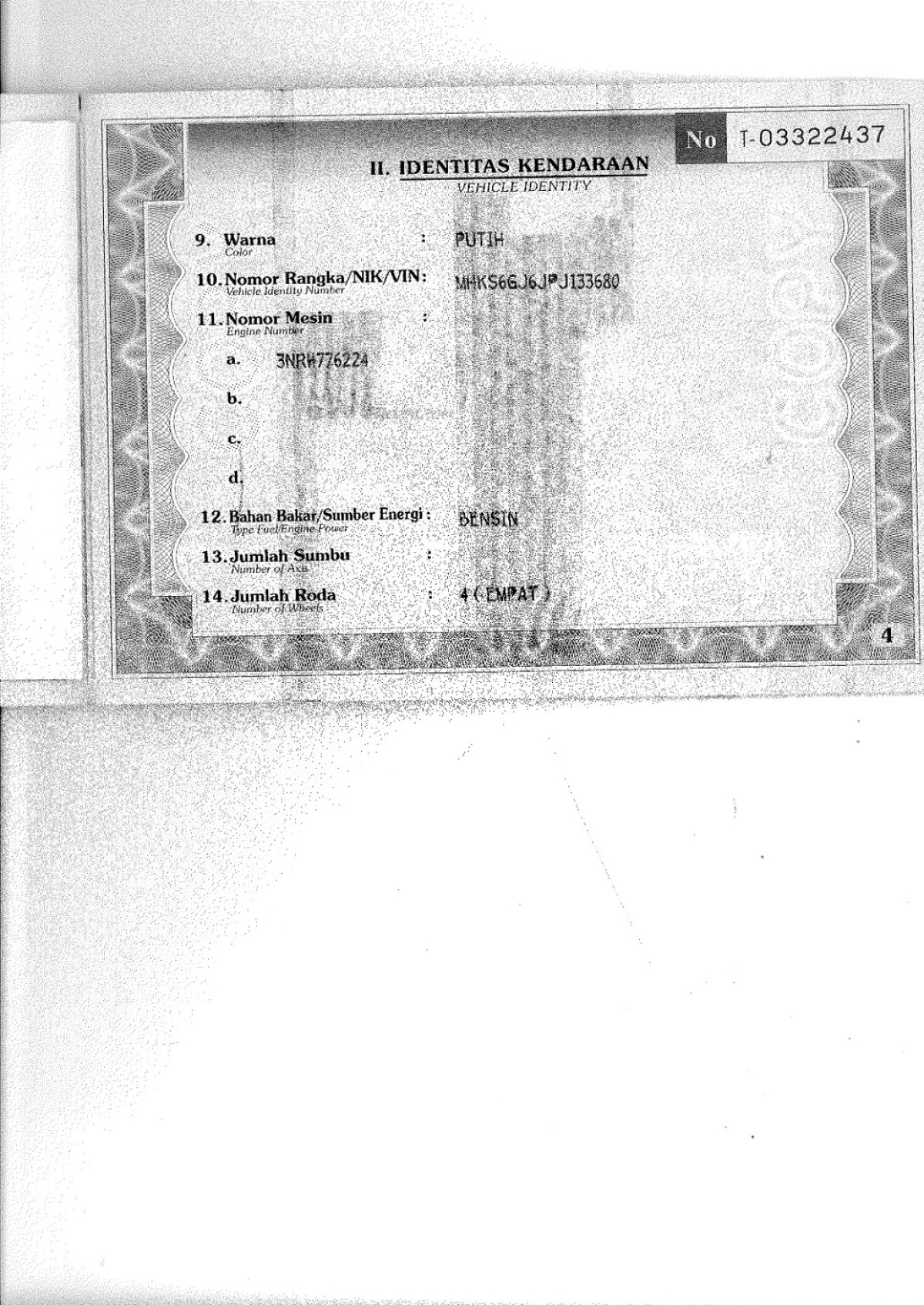 No. Rangka | : | MHKS6GJ6JPJ133680 |