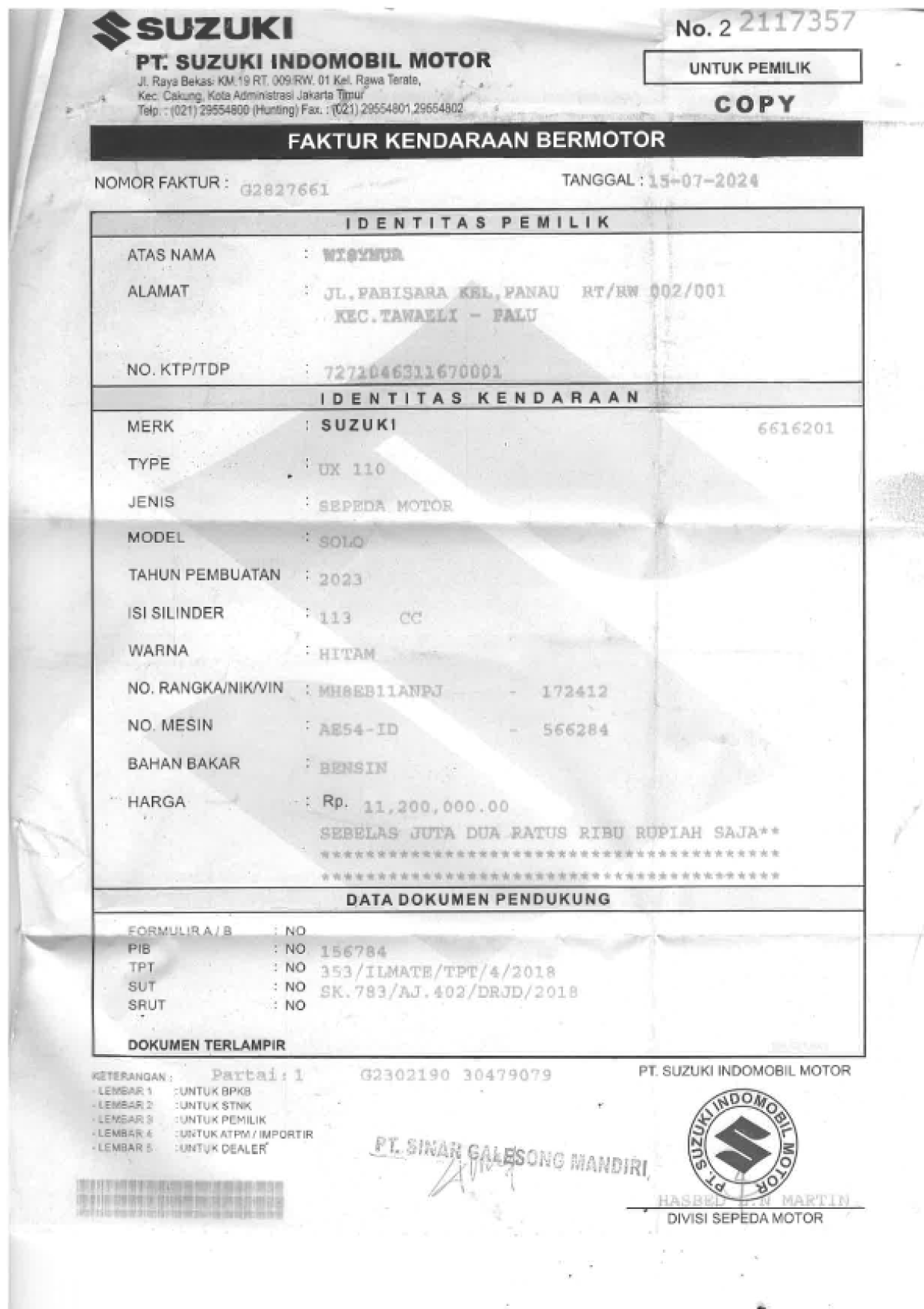 | Faktur | : | Tidak Ada |
