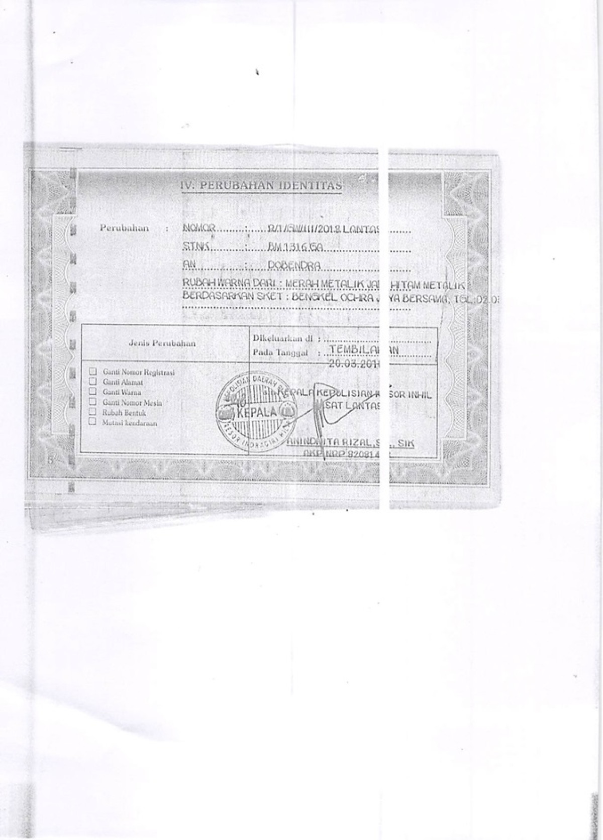 No. Polisi | : | BM 1316 GA |