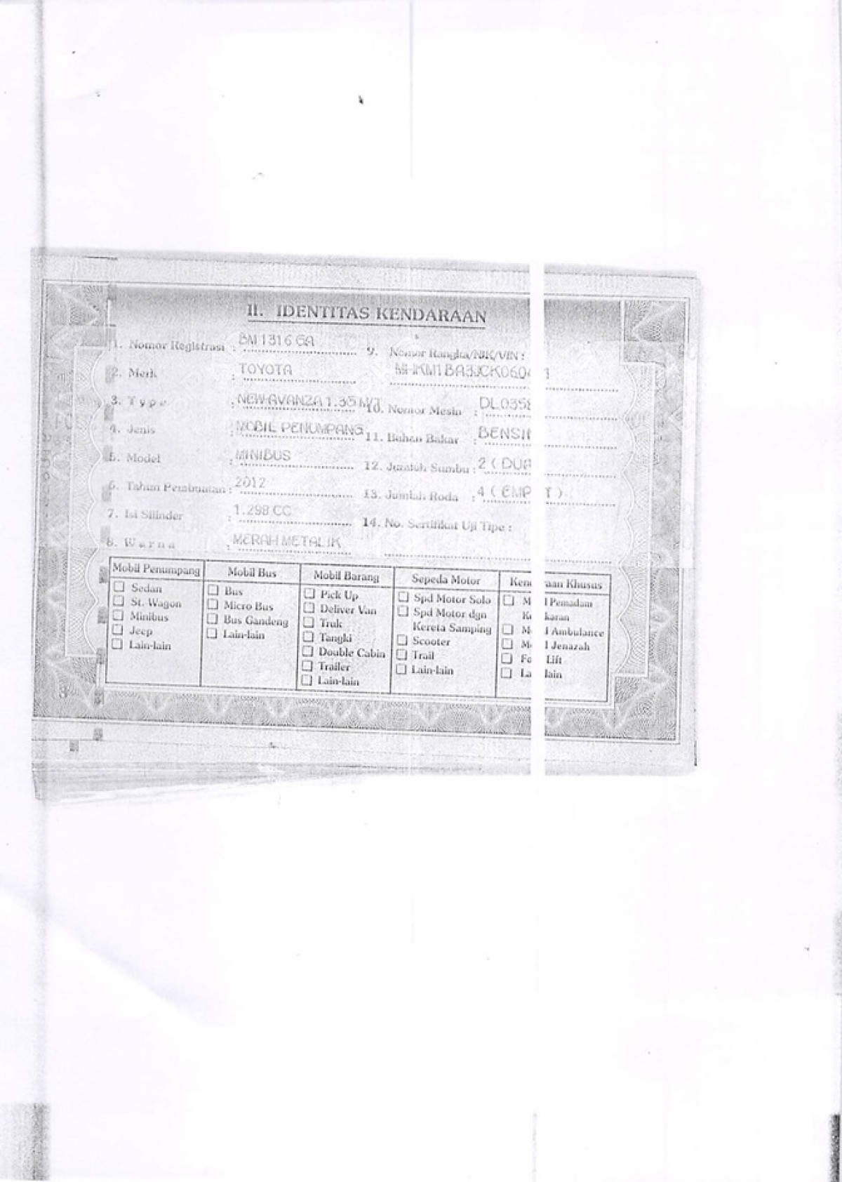 STNK | : | Ada |