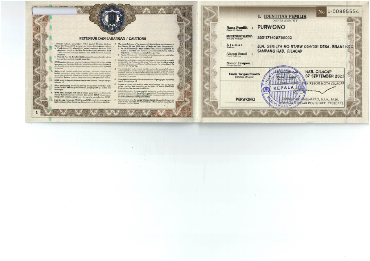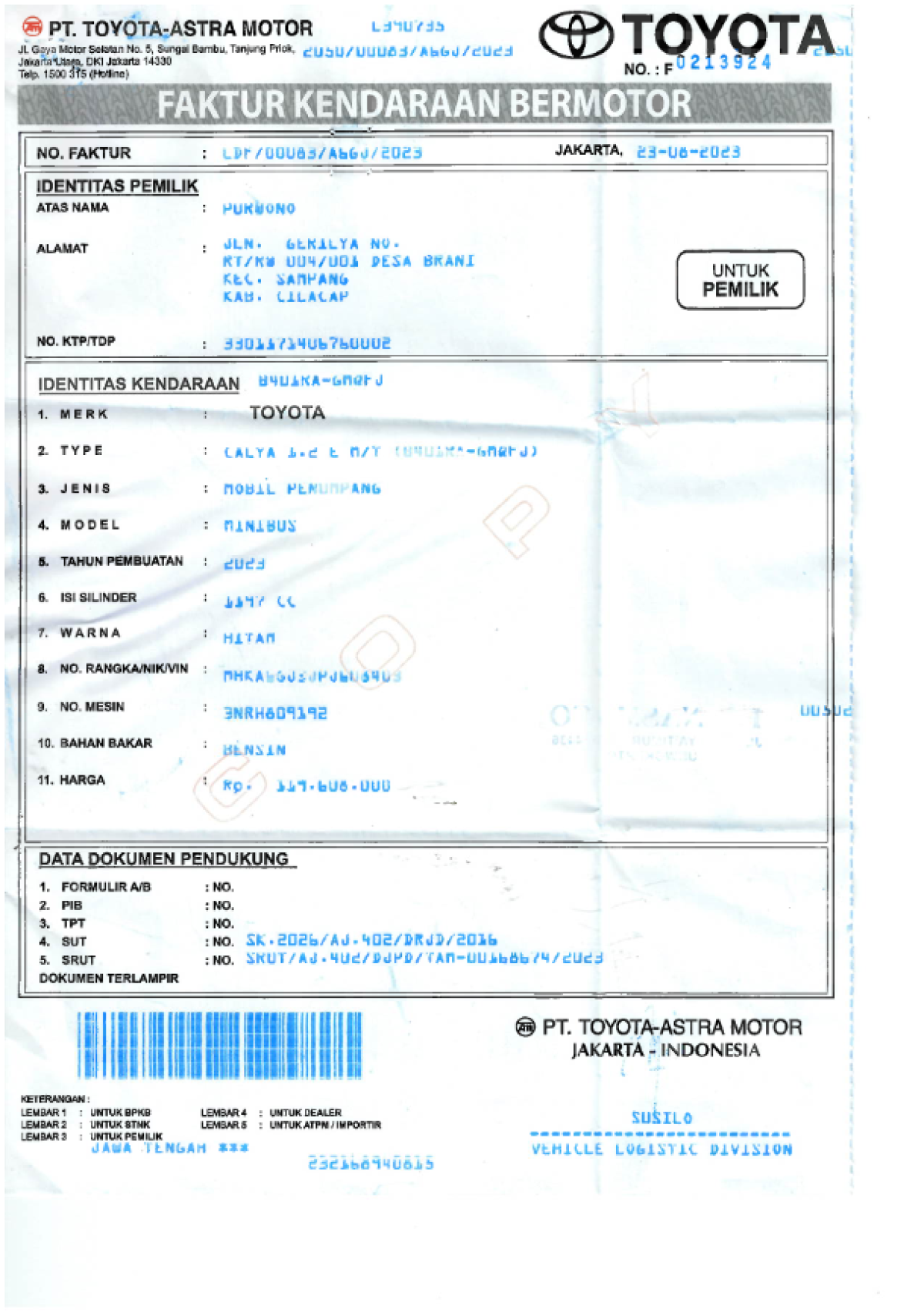 No. Rangka | : | MHKA6GJ3JPJ608403 |