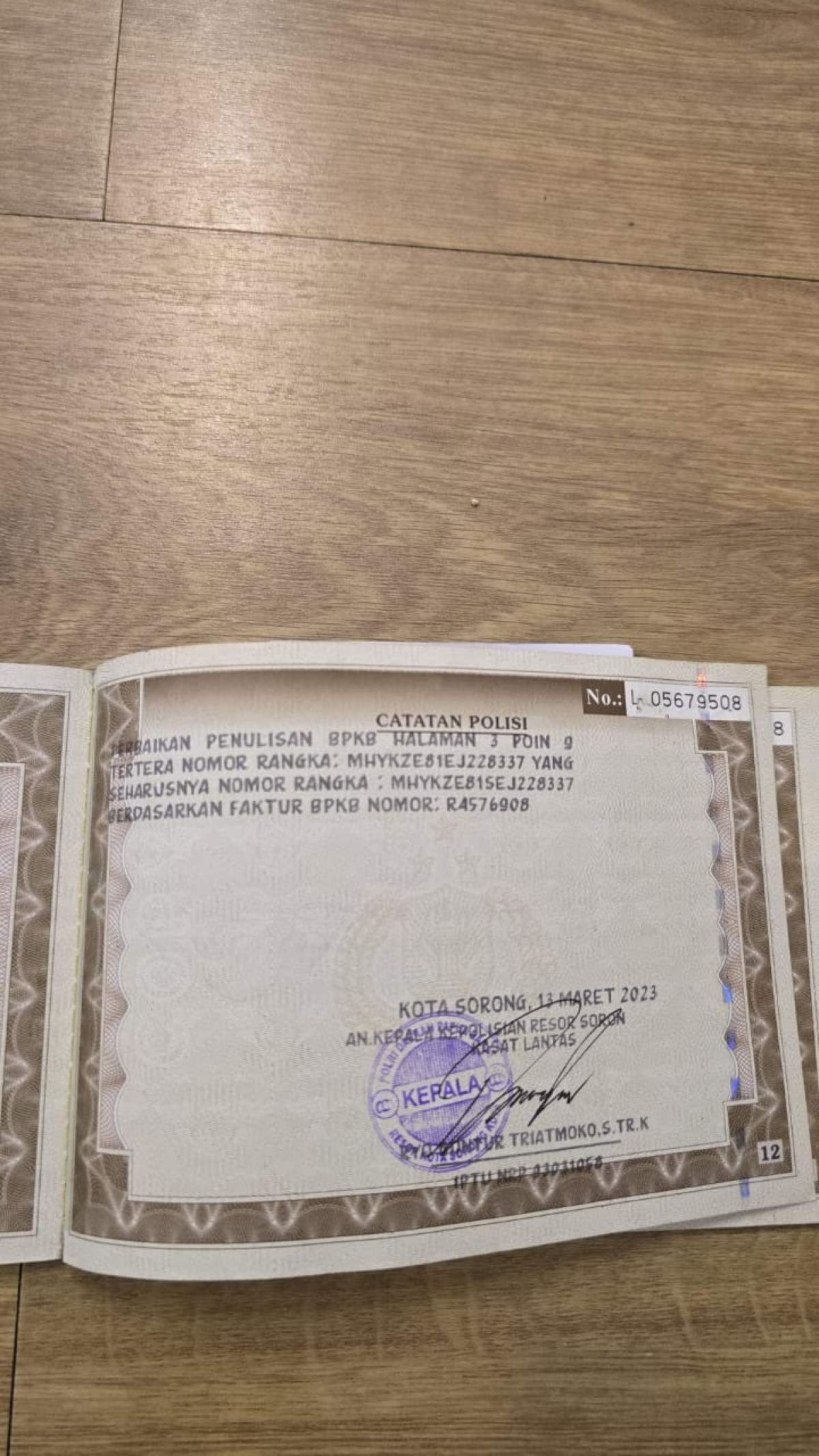 No. Rangka | : | MHYKZE81SEJ228337 |